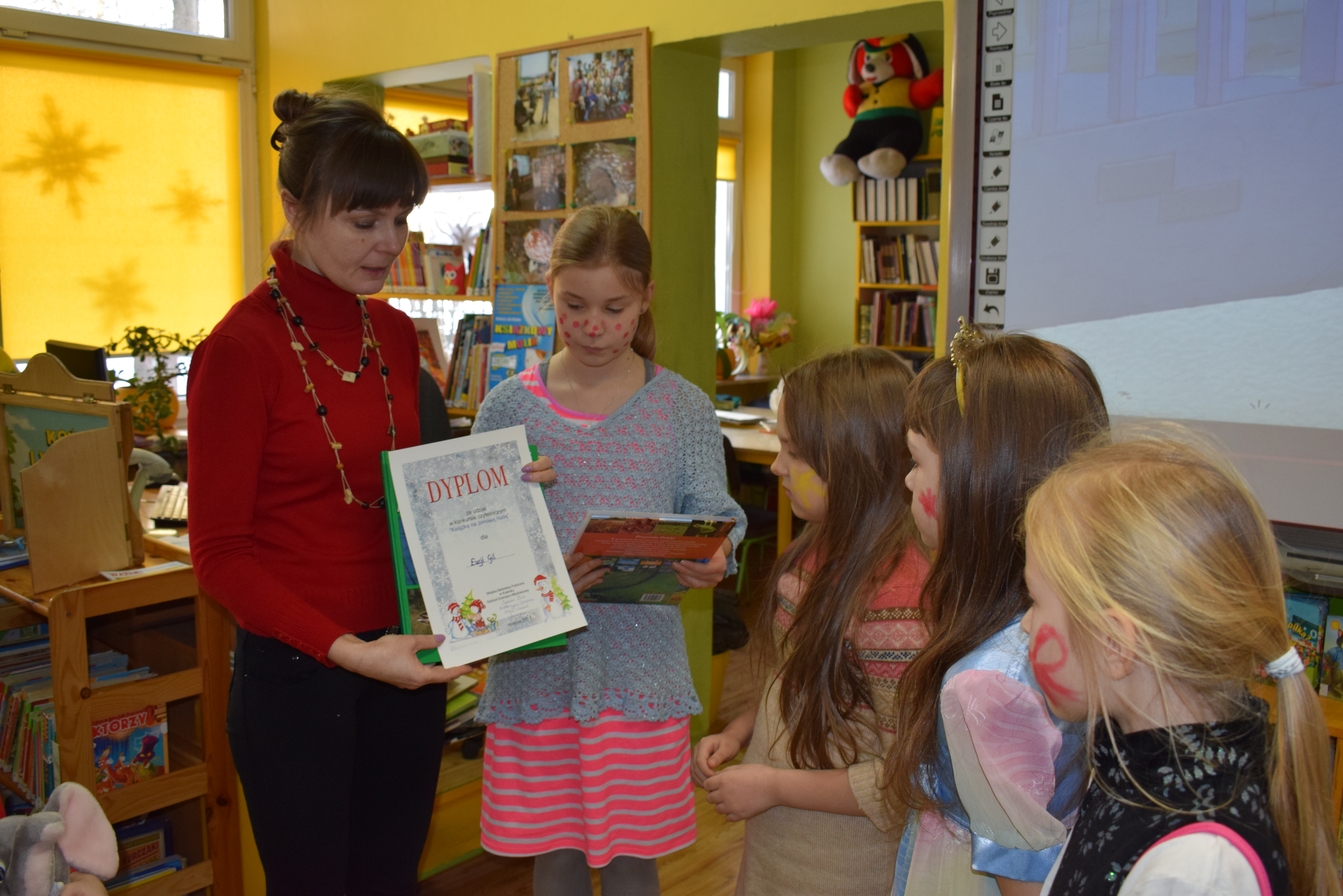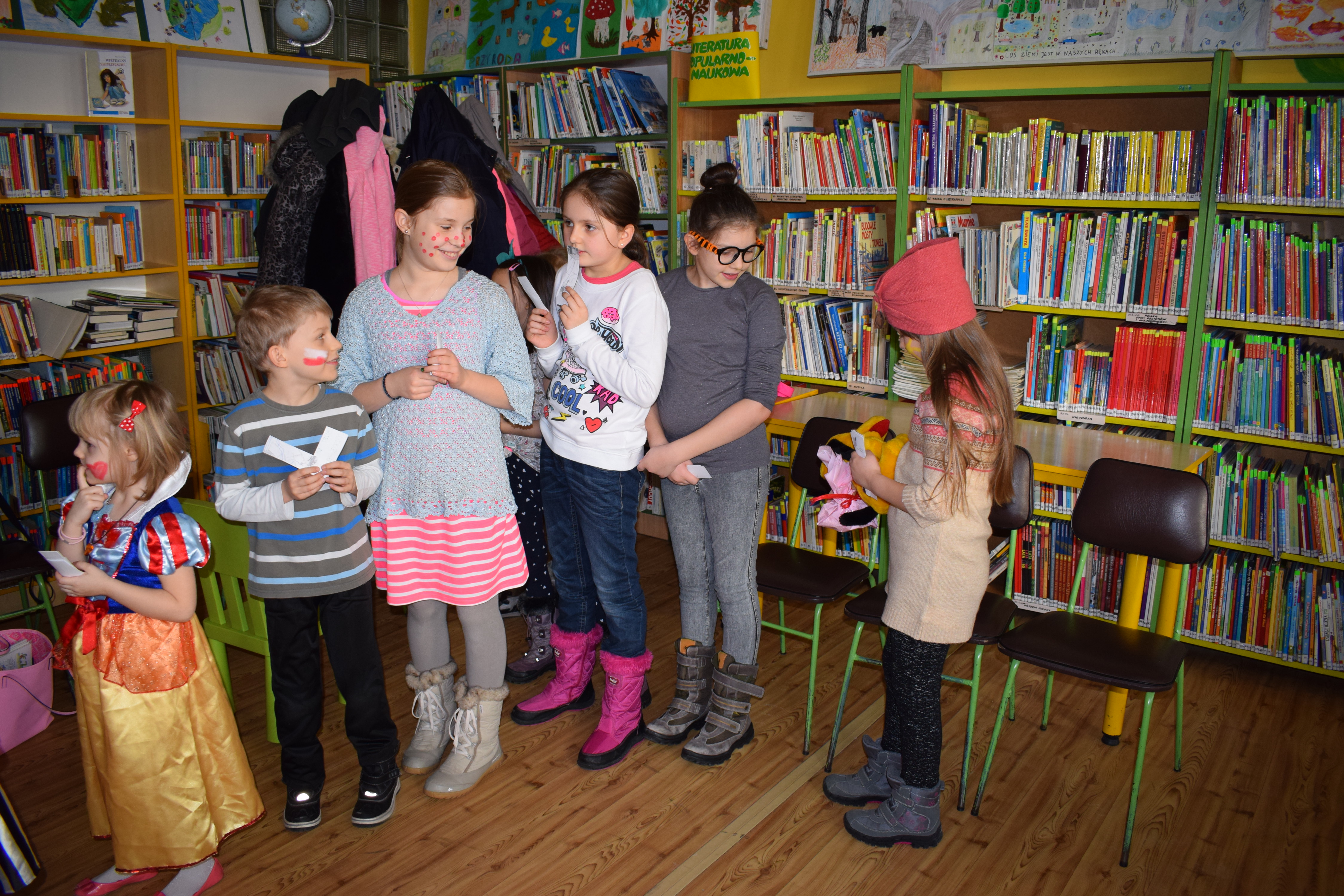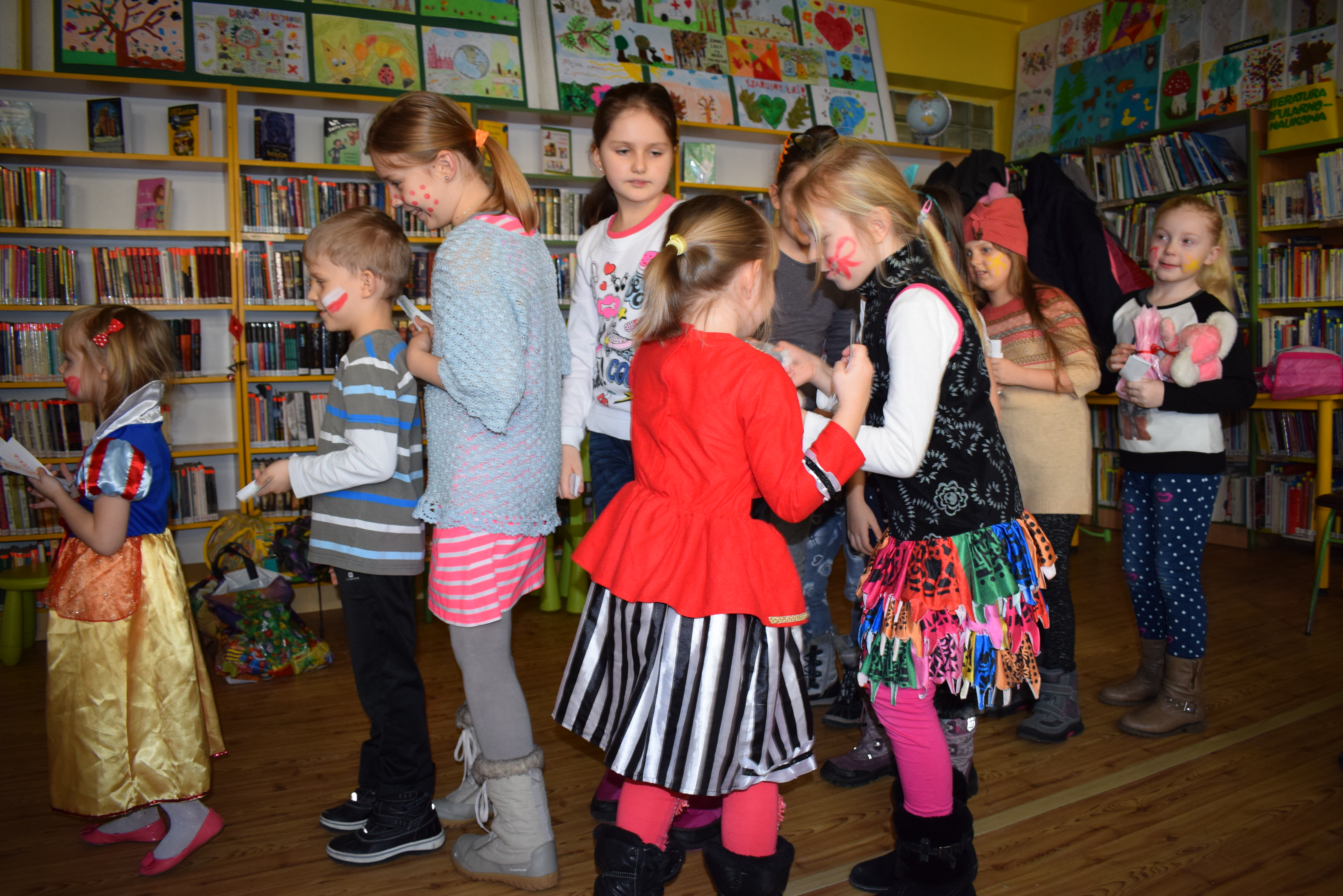 Bal karnawałowy w Bibliotece Głównej to najbardziej oczekiwane wydarzenie w ostatnim tygodniu ferii. Zabawa w krzesełka, bijąca rekordy popularności, malowanie twarzy, rozdanie nagród za udział w konkursach zorganizowanych przez Oddział Dziecięco-Młodzieżowy i wiele innych atrakcji wzbudziło zachwyt naszych milusińskich. Największym uznaniem dzieci cieszyła się jednak loteria fantowa. I w całej zabawie nie przeszkodził nam nawet brak prądu. Wystarczyło energii, by rozgrzać wszystko i wszystkich do czerwoności.