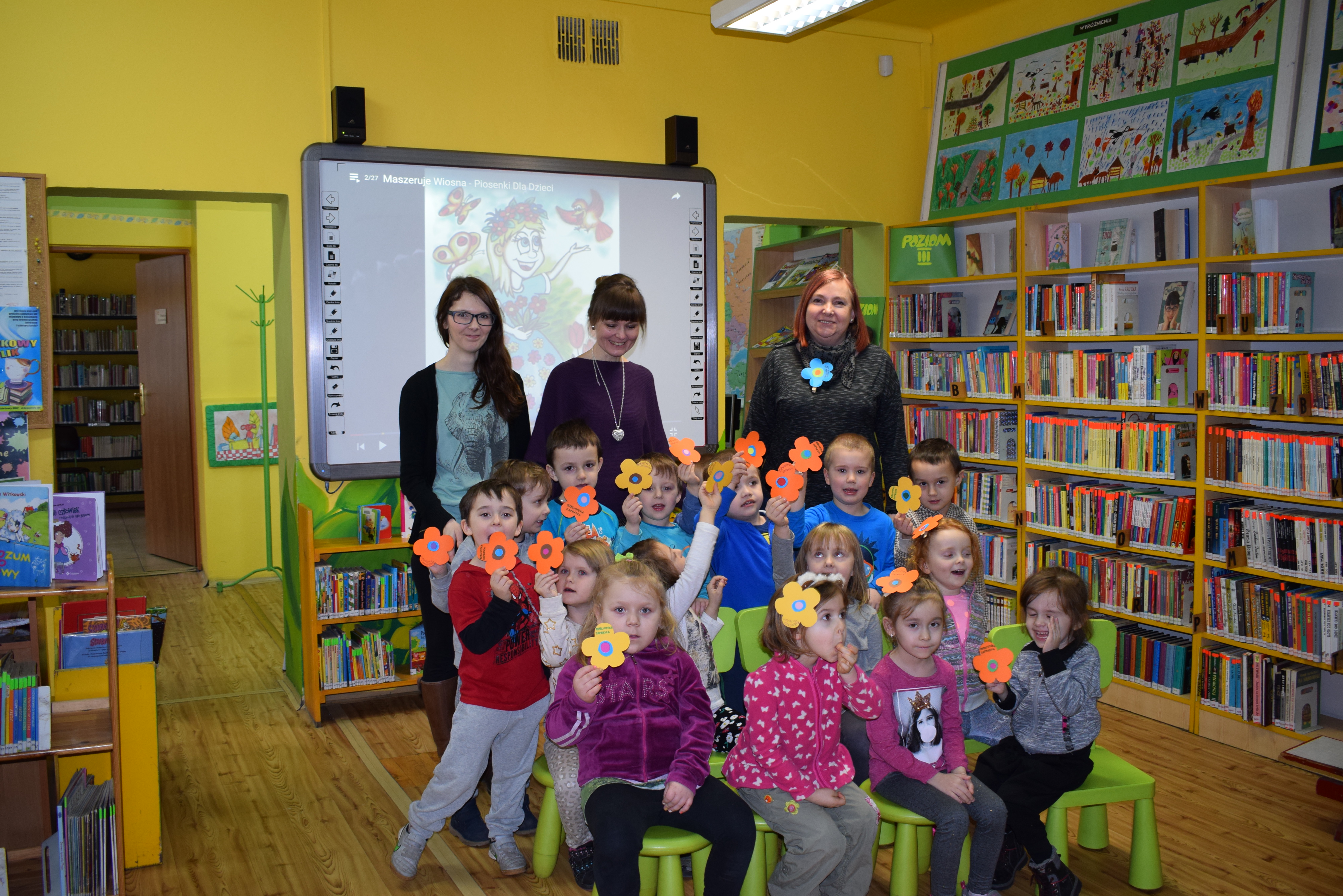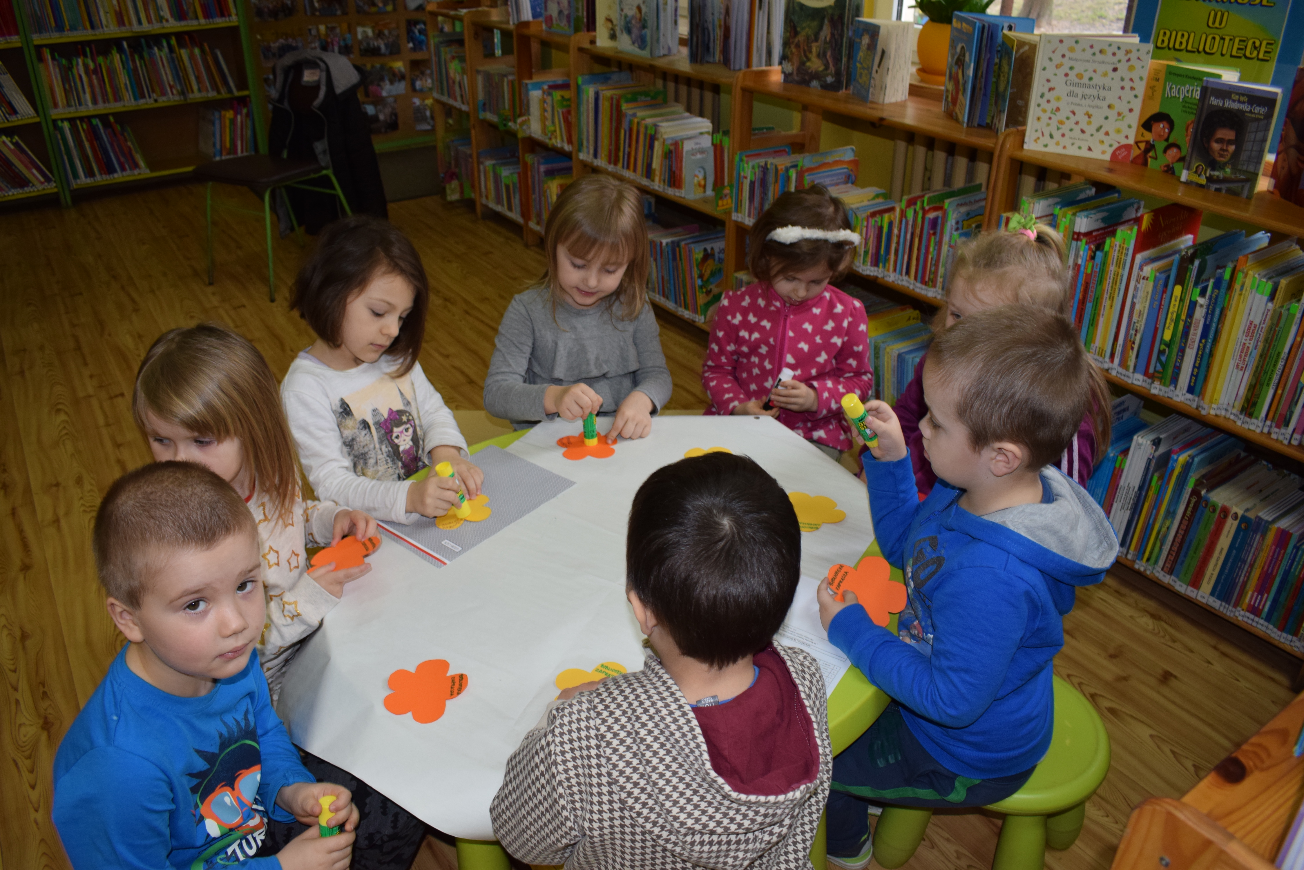 ...szczególnie wtedy, gdy przybywającą wiosnę pozdrawiamy razem z dziećmi z Przedszkola Miejskiego nr 5. Tworzenie wiosennych kolorowych kwiatuszków to tylko przedsmak do serdecznie witających wiosnę tańców i zabaw. Pogodna, optymistyczna tematyka poruszona w Bibliotece Głównej 14 marca br. sprawia nie tylko radość pani Wiośnie, ale i nam, o czym świadczą rozpromienione buzie.