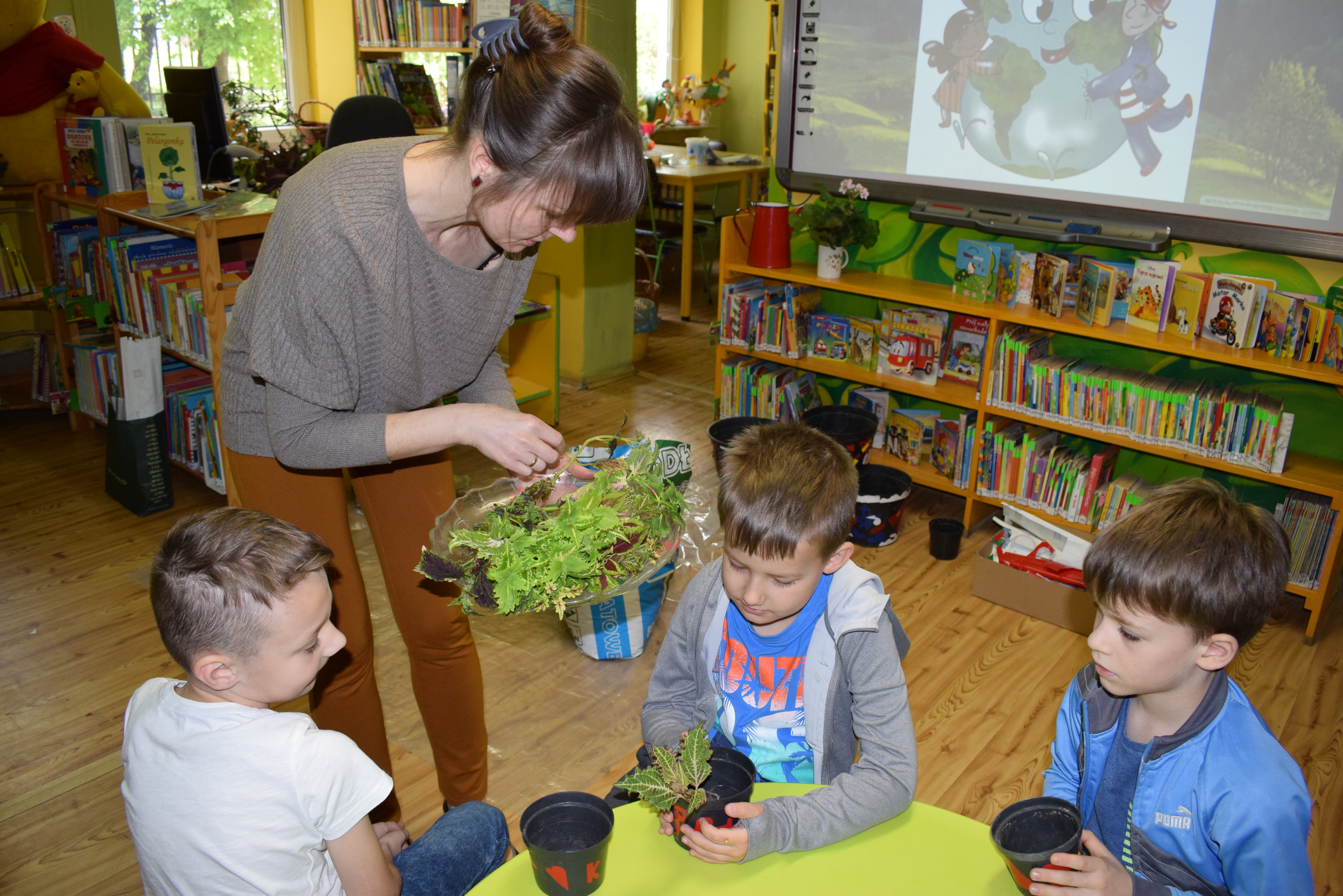 Ekologia to temat-rzeka. Oddział Dziecięco-Młodzieżowy podchodzi do tej tematyki od strony praktycznej. 4 maja 2017 r. odbyły się zajęcia, na których poruszaliśmy kwestie recyklingu i nie tylko. Nasze ekologiczne dzieciaki (klasa II b ze Szkoły Podstawowej nr 2) poradziły sobie doskonale również z sadzeniem pięknych roślinek. Efekt? Nadzwyczajne rośliny w niezwykłym miejscu z nieziemskimi ogrodnikami.
