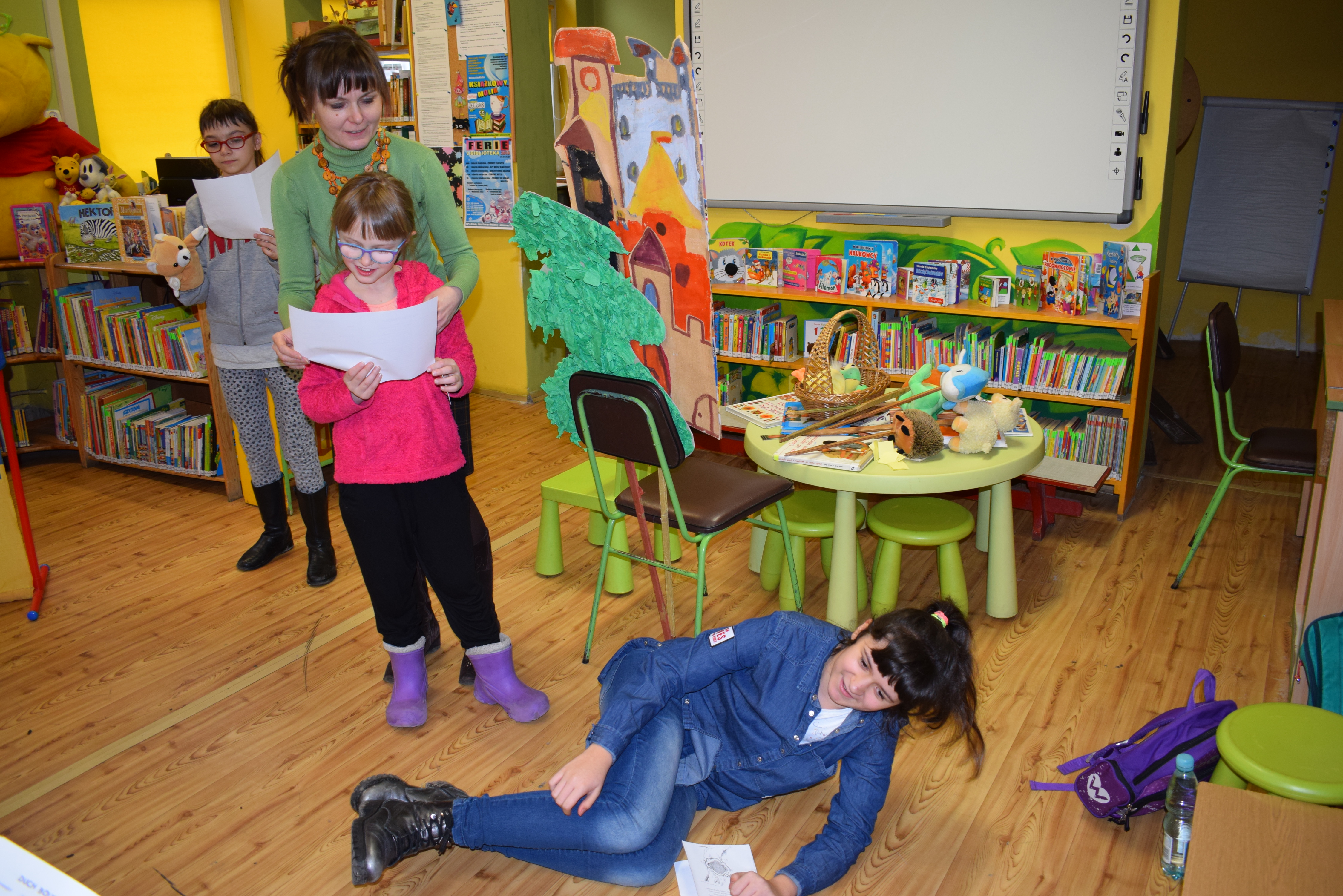Dzisiaj rozpoczęły się ferie w bibliotece. Zajęcia teatralne to doskonały sposób sprawdzenia swoich aktorskich umiejętności. Wszyscy uczestnicy mieli okazję na chwilę być: wilkiem, myśliwym, babcią, duchem, doktorem czy Czerwonym Kapturkiem.