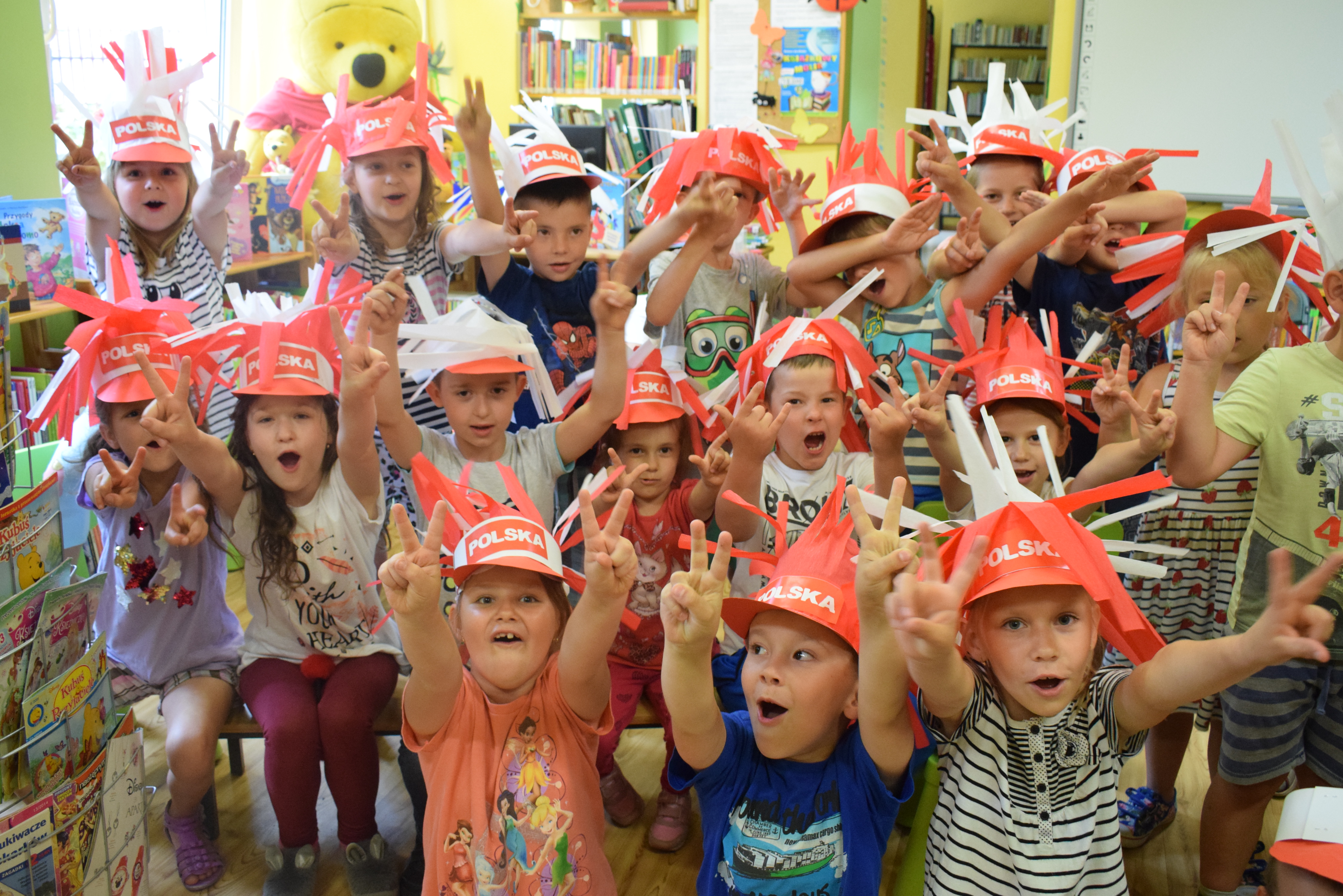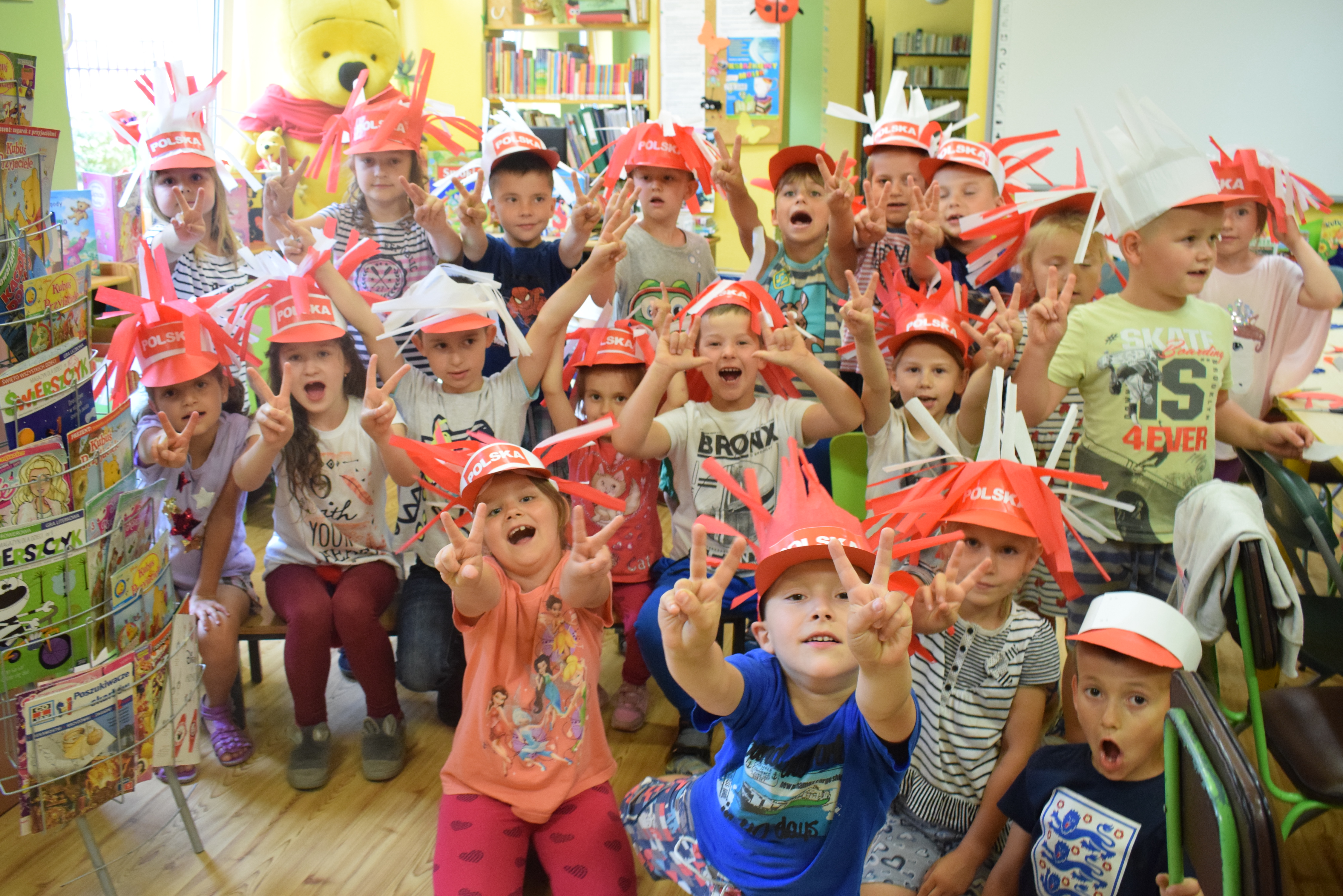 Kleksiki na ostatnich zajęciach plastycznych wykonały czapki kibica. Wszyscy trzymaliśmy kciuki za naszą drużynę!