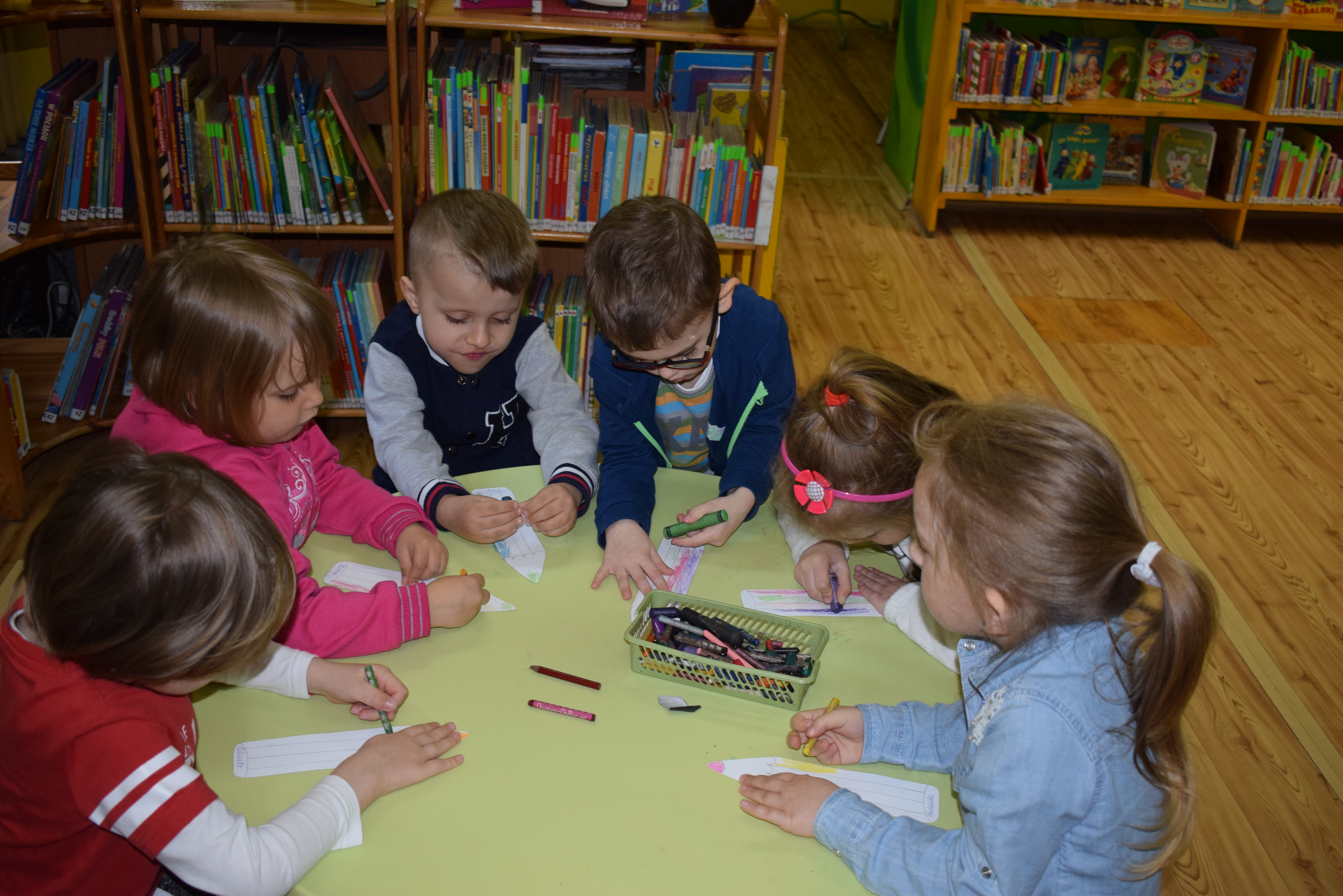 Dzisiaj 16 maja br. bibliotekę odwiedziły dzieci 4-letnie z Przedszkola Miejskiego nr 7. Tematem naszego spotkania była oczywiście.. książka. Maluchy doskonale wiedzą co zrobić, aby książki długo były ładne. Wykonały też zakładki, które mają przypominać tą miłą wizytę w bibliotece.