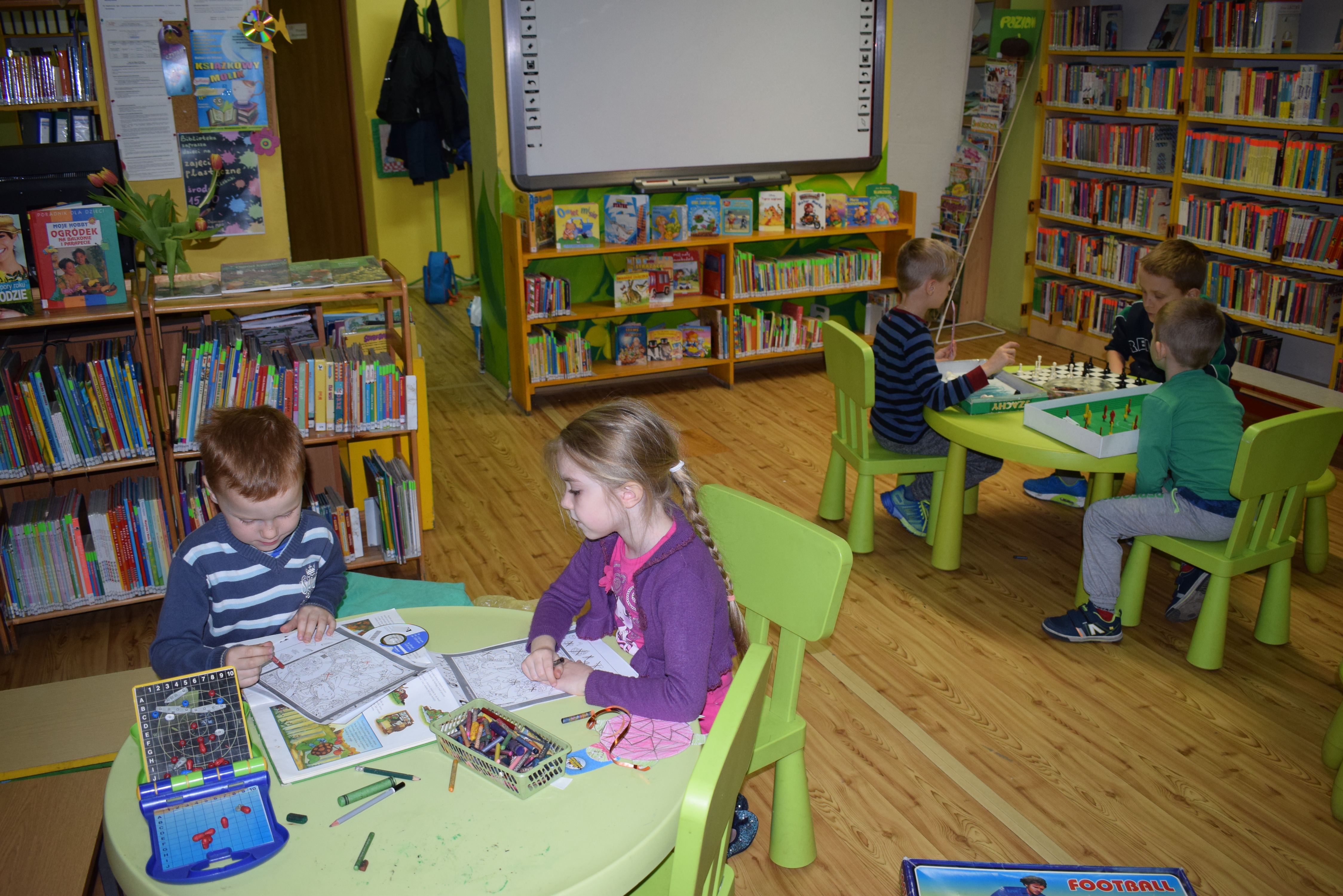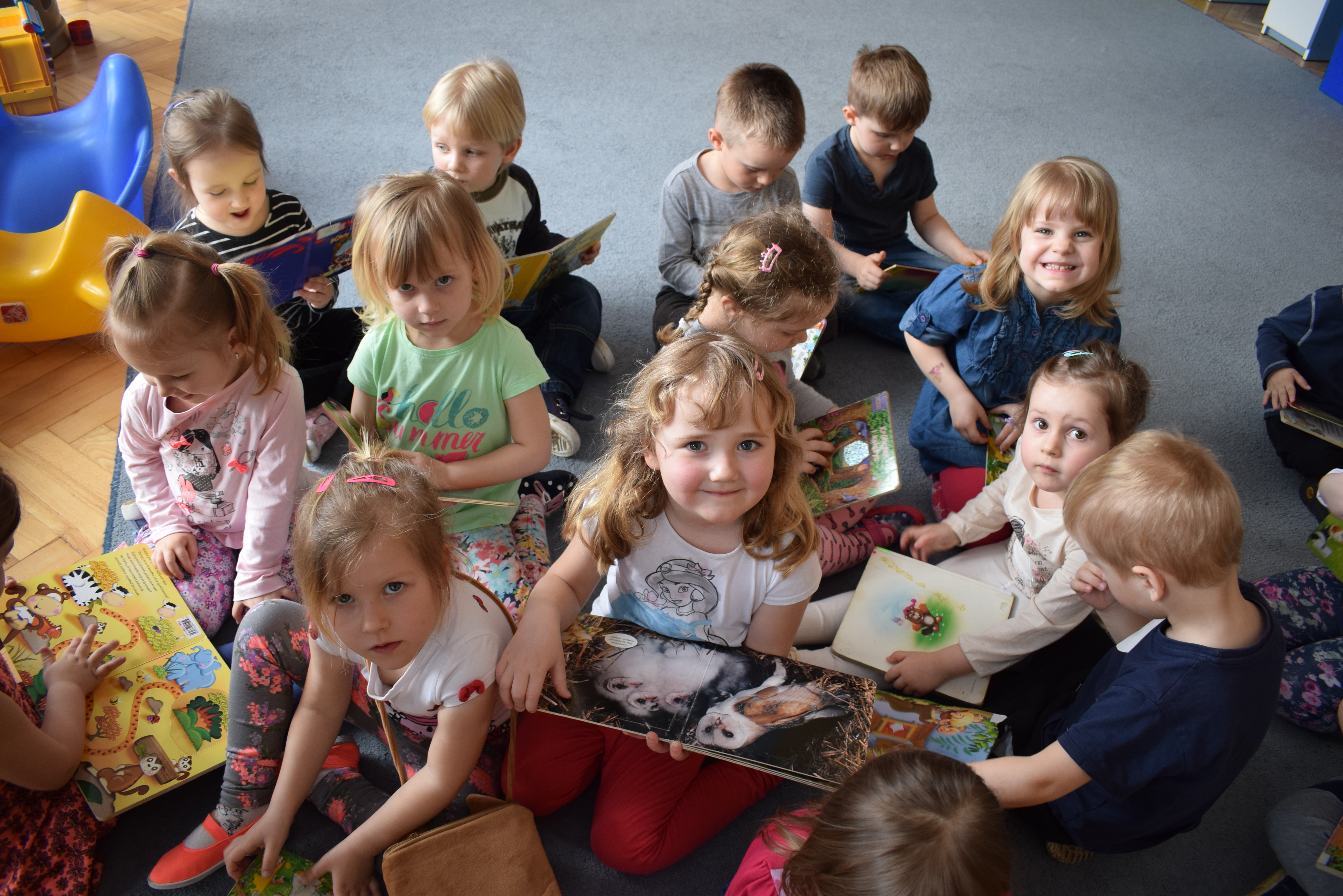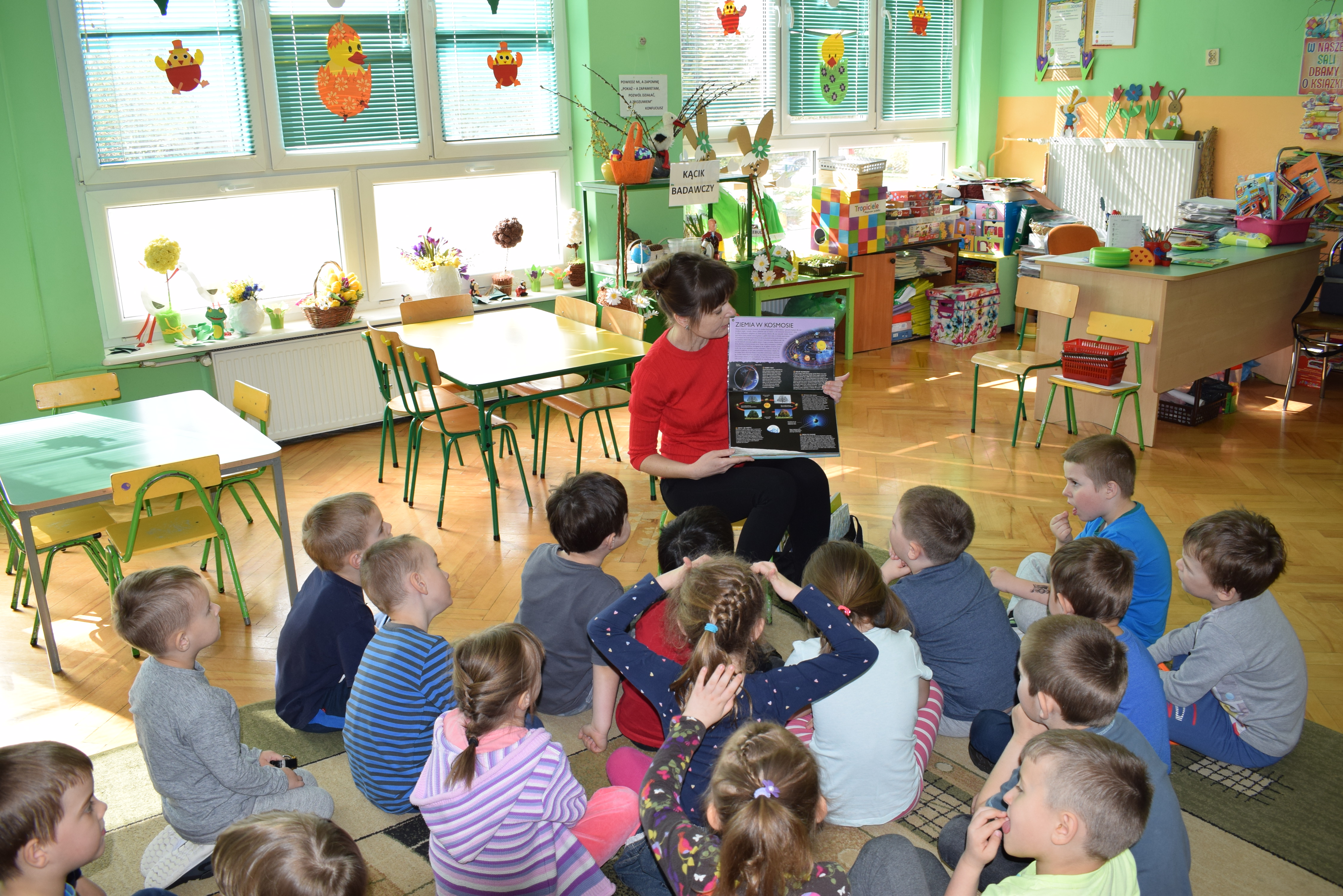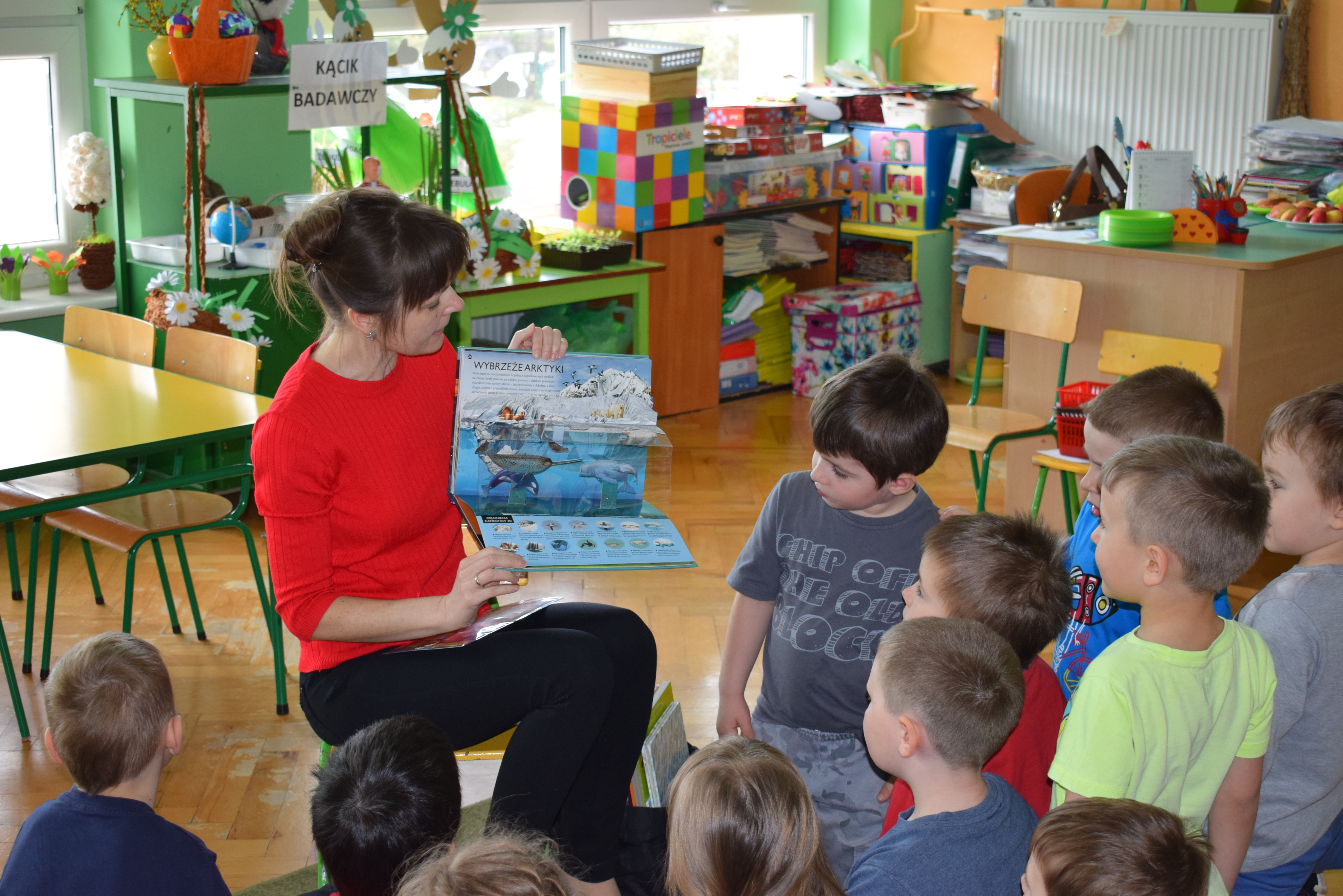 W ramach akcji "Bibliotekarz w przedszkolu" odbyło się dzisiaj (tj. 24 kwietnia 2017 r.) głośne czytanie o tematyce przyrodniczej. Duże zainteresowanie wzbudziły książki "Nasza planeta" i "Zwierzęta świata".