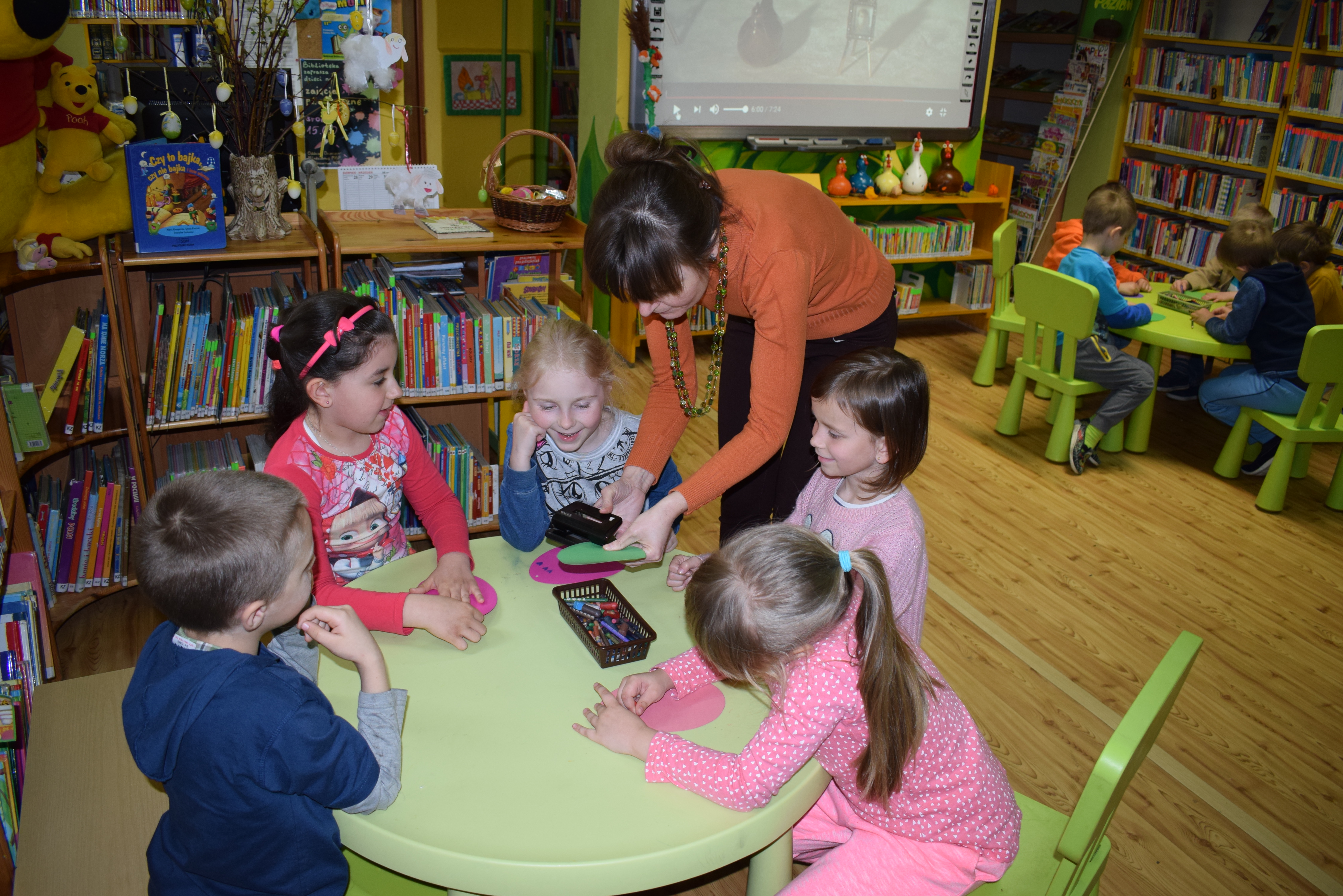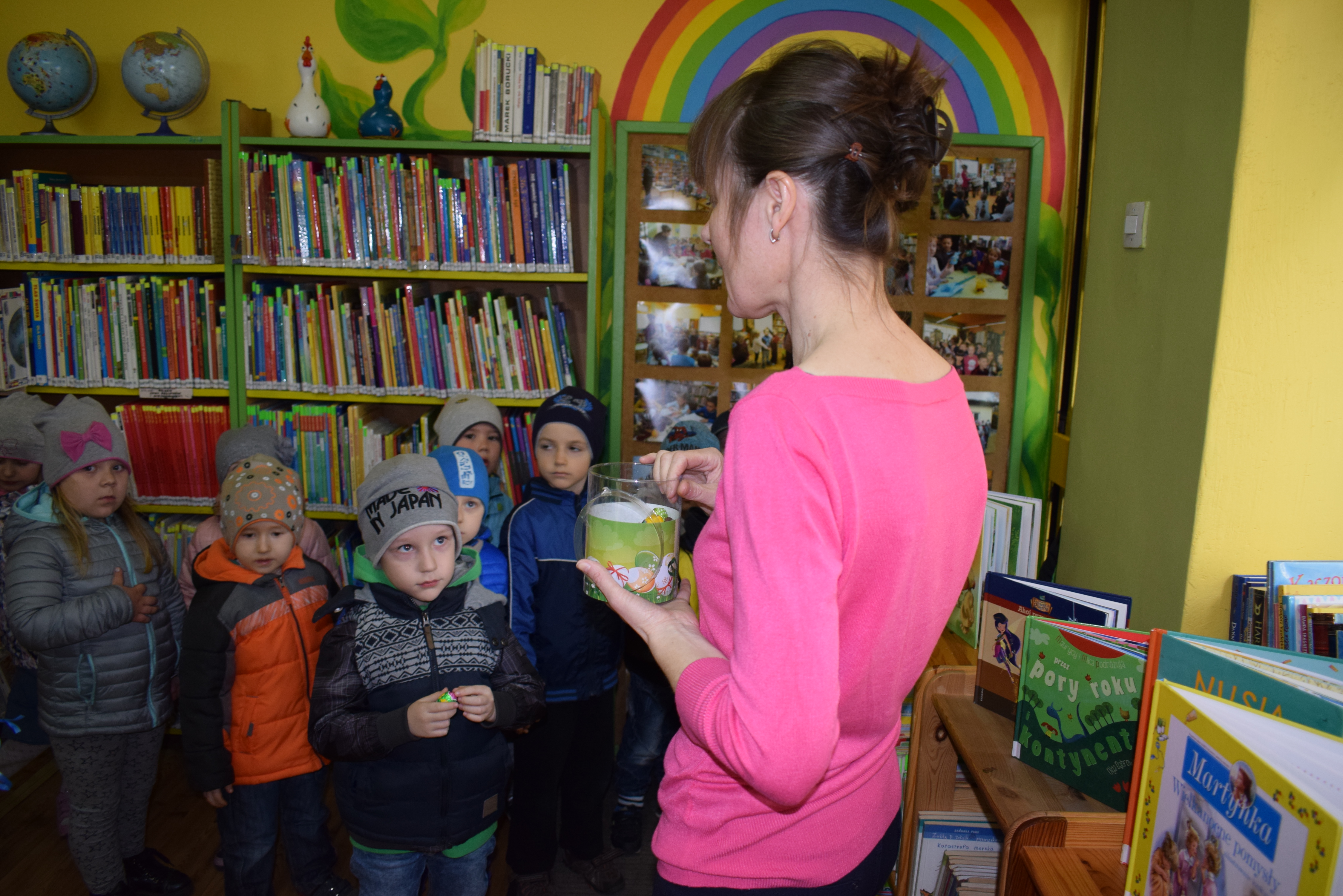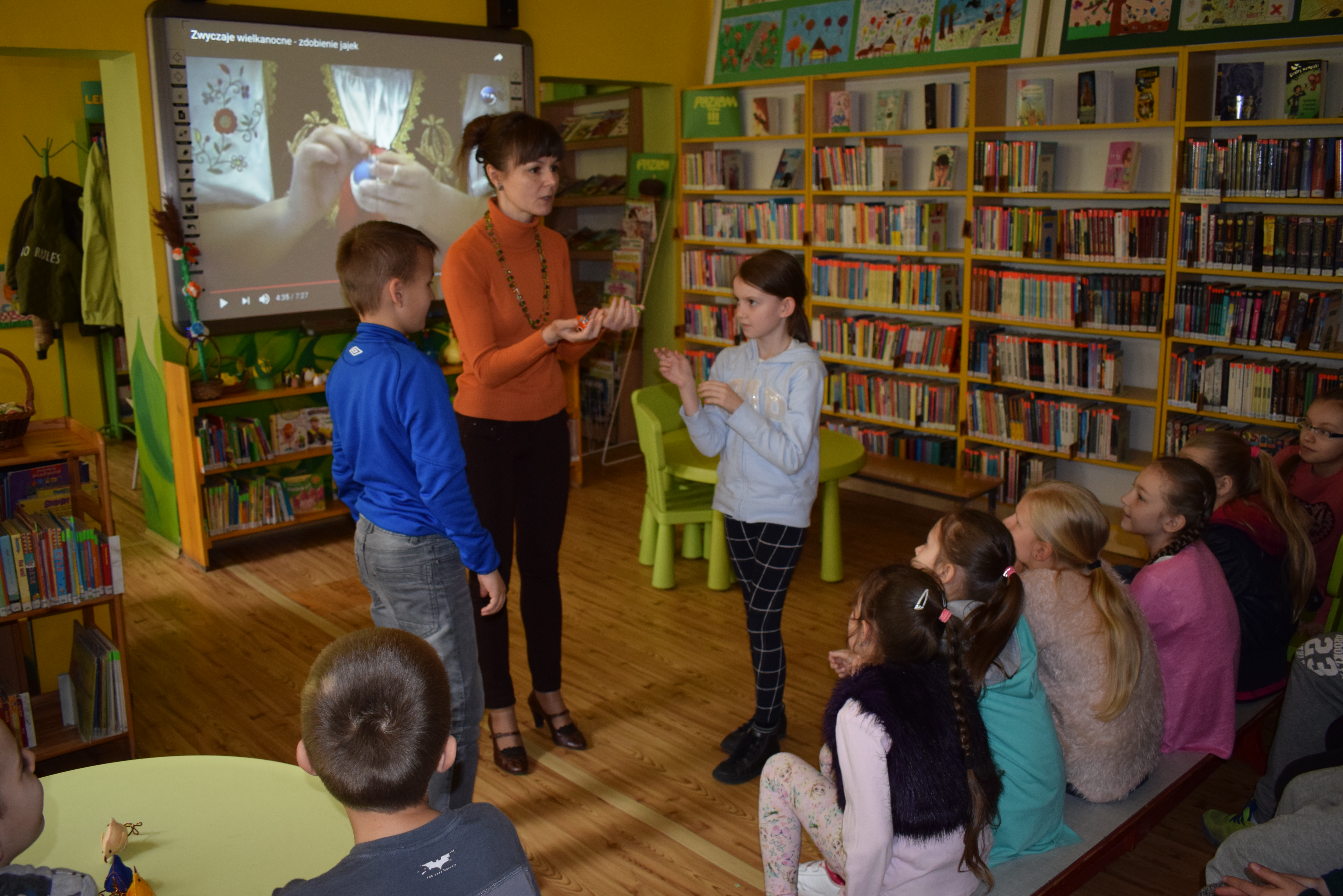 12 kwietnia br. w Bibliotece Głównej odbyła się niesamowita zabawa "na wybitki" i przyjemne poszukiwania wielkanocnego jajka.Temat świąt Wielkiej Nocy to niezliczone pomysły do zabawy i nauki. Historie tych świąt dzieci z Przedszkola Miejskiego nr 5 i Szkoły Podstawowej nr 1 mają w małym paluszku.