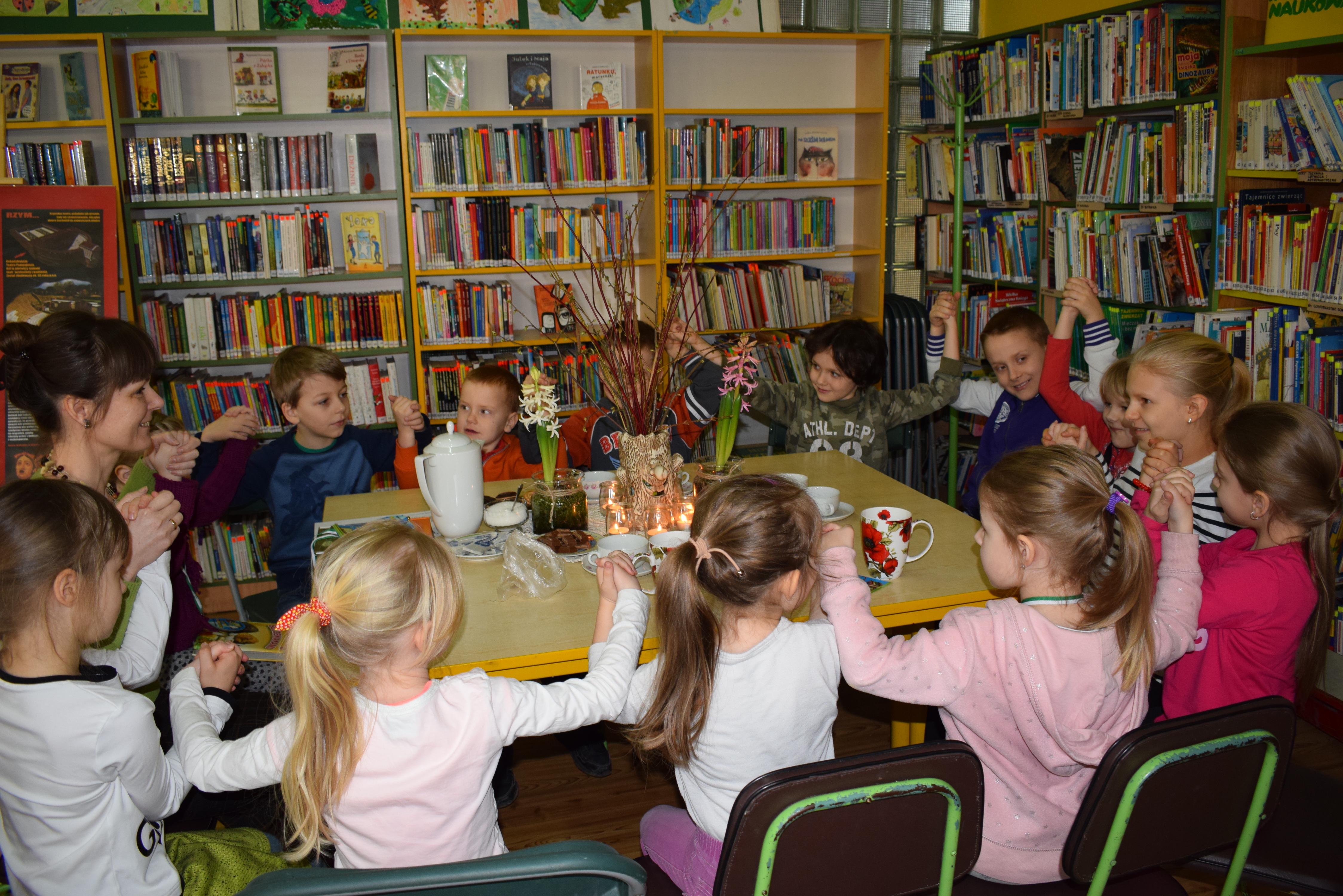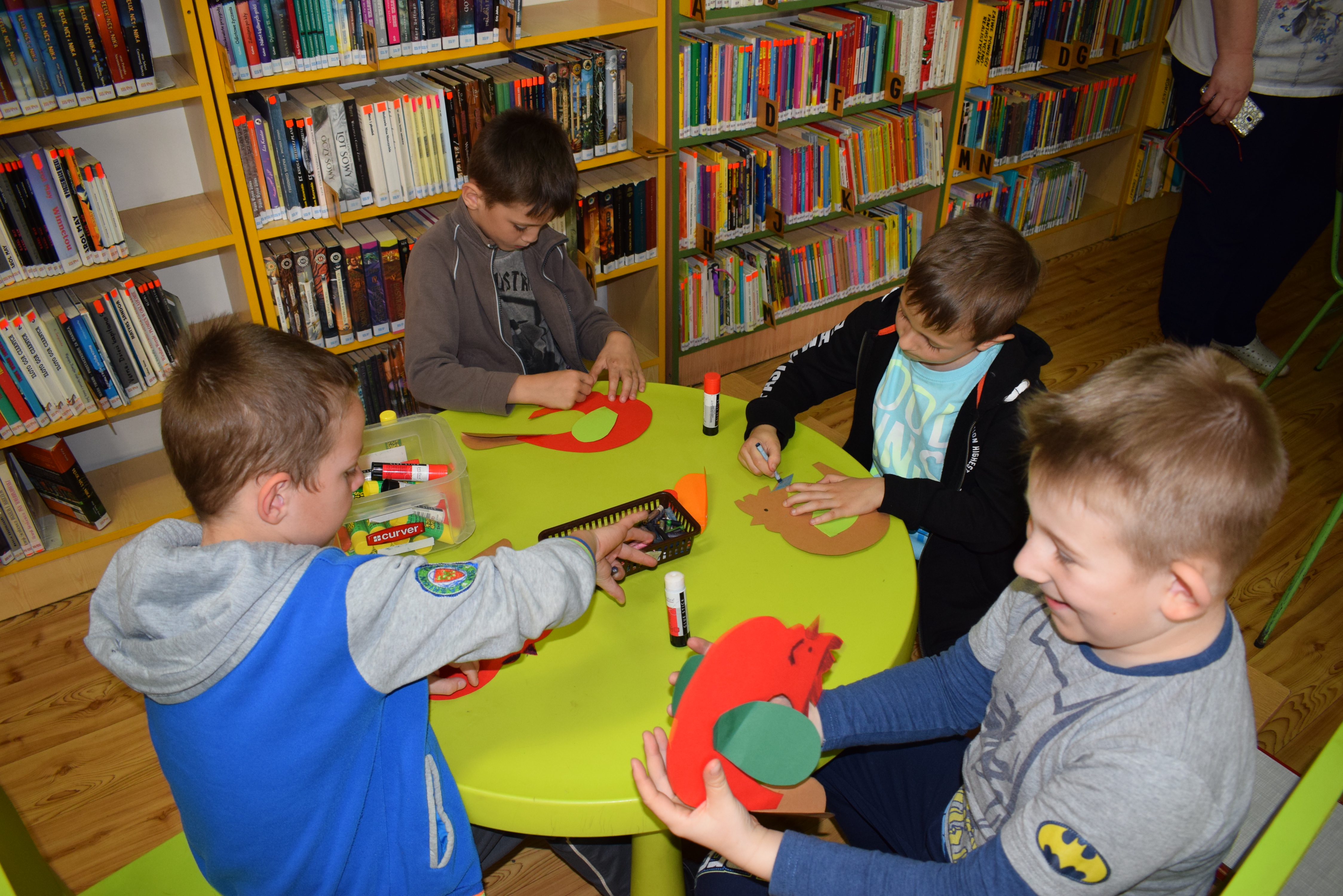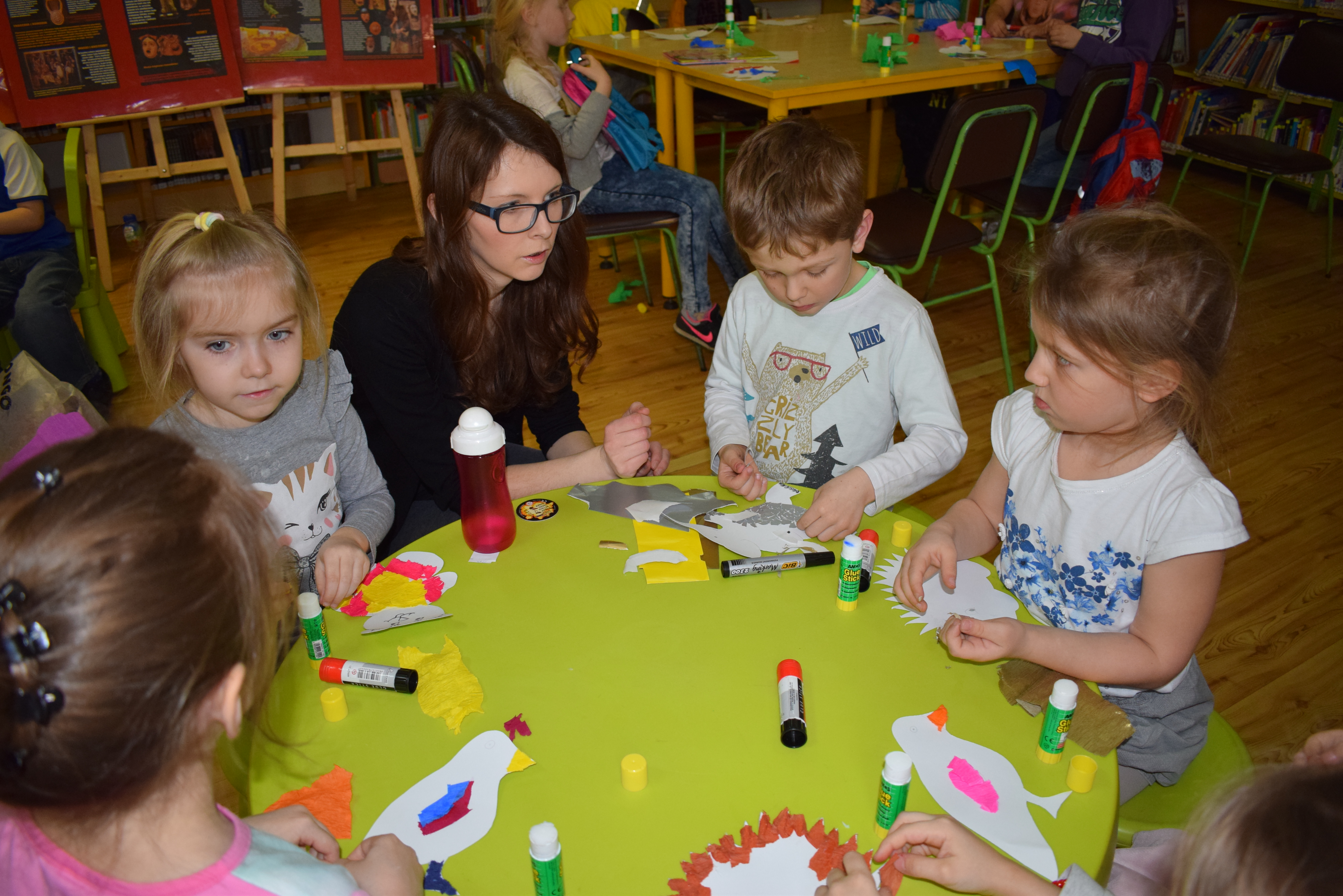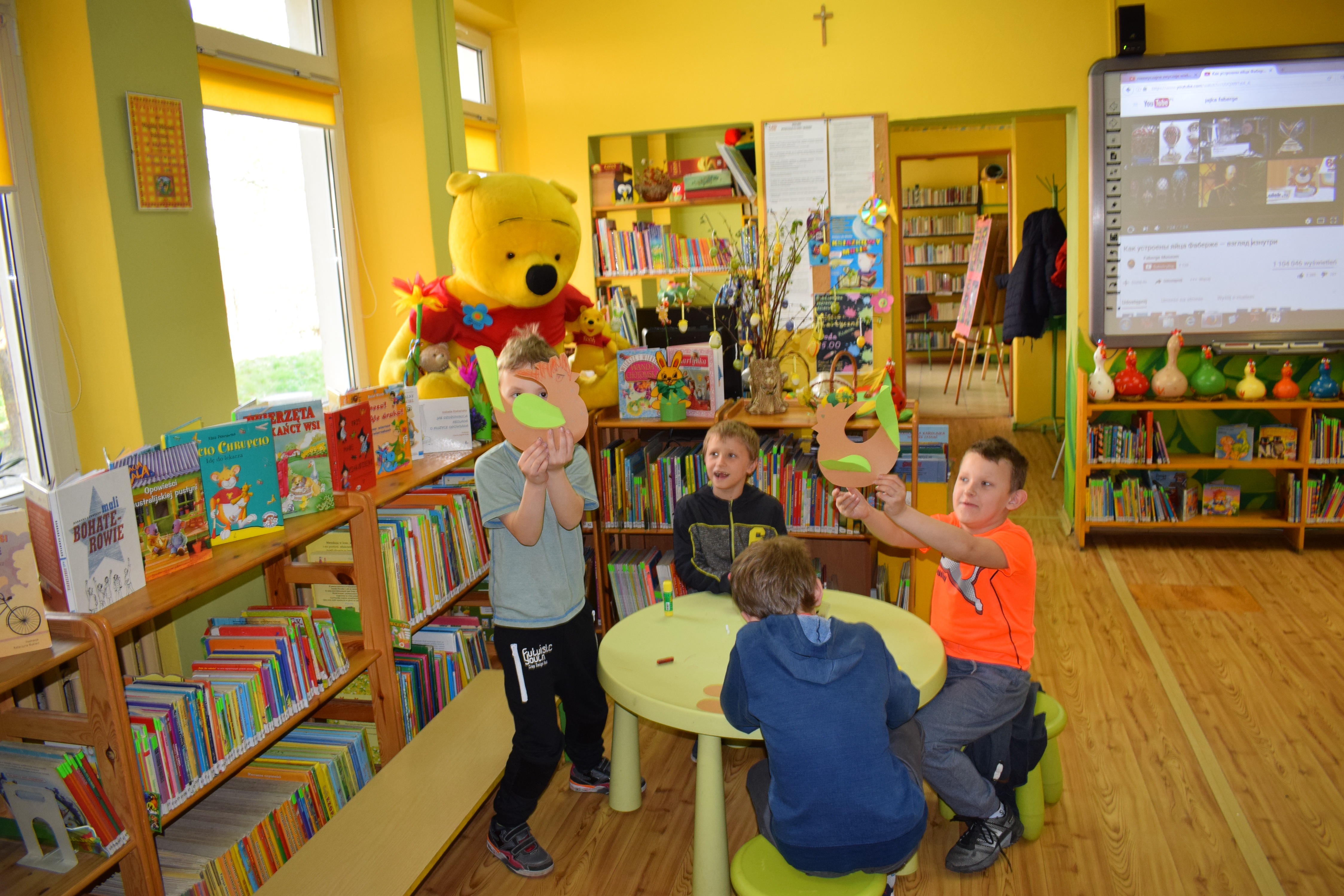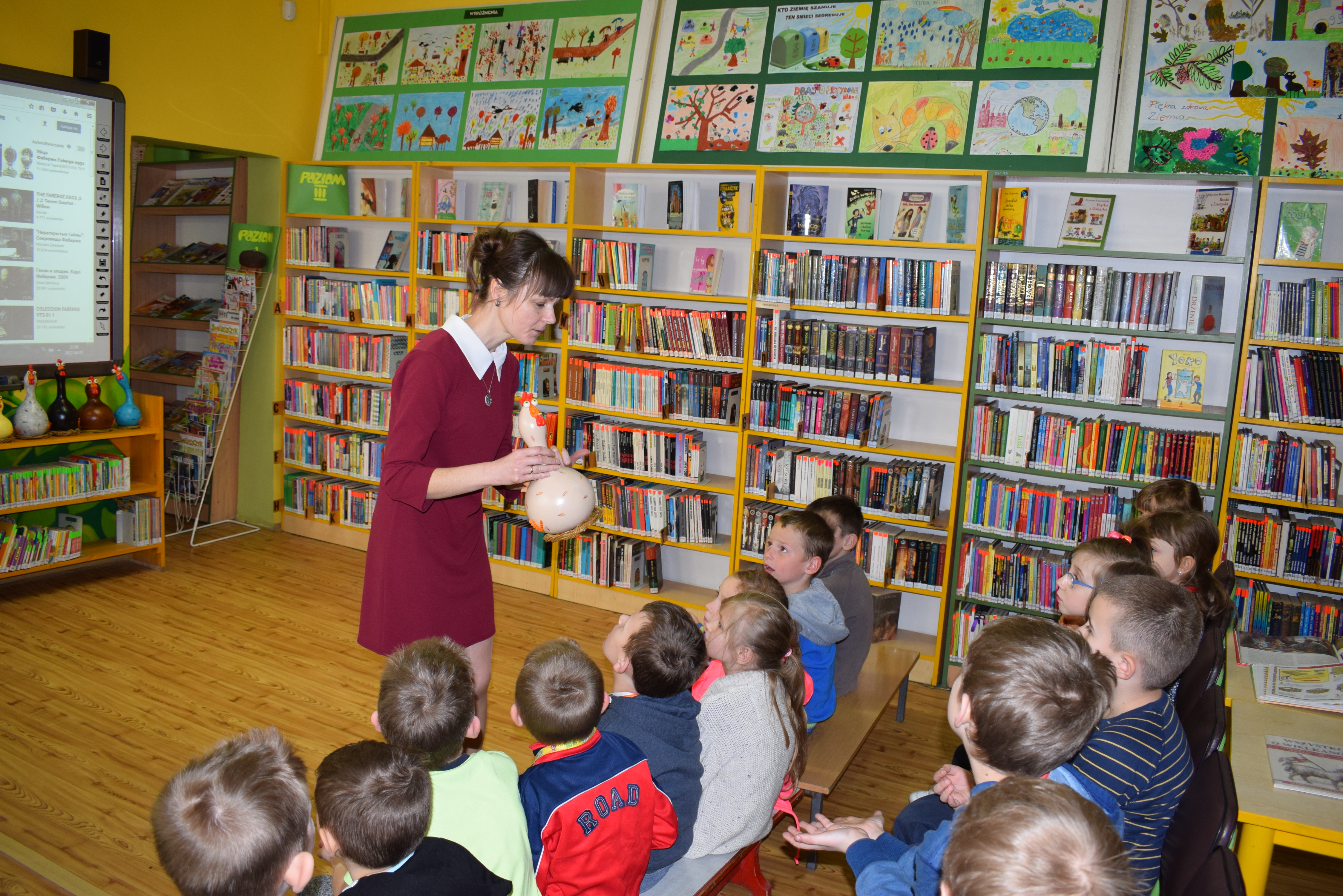 Co raz bliżej święta... Wielkiej Nocy. 3 kwietnia 2017 r. w Bibliotece Głównej na pierwszym planie pisanki, kurki, kurczaczki i koguciki. Powiało optymizmem, jak to na te wiosenne święta przystało. Ten optymizm przyniosło nie tylko słonko, ale również dzieci ze Szkoły Podstawowej nr 2.