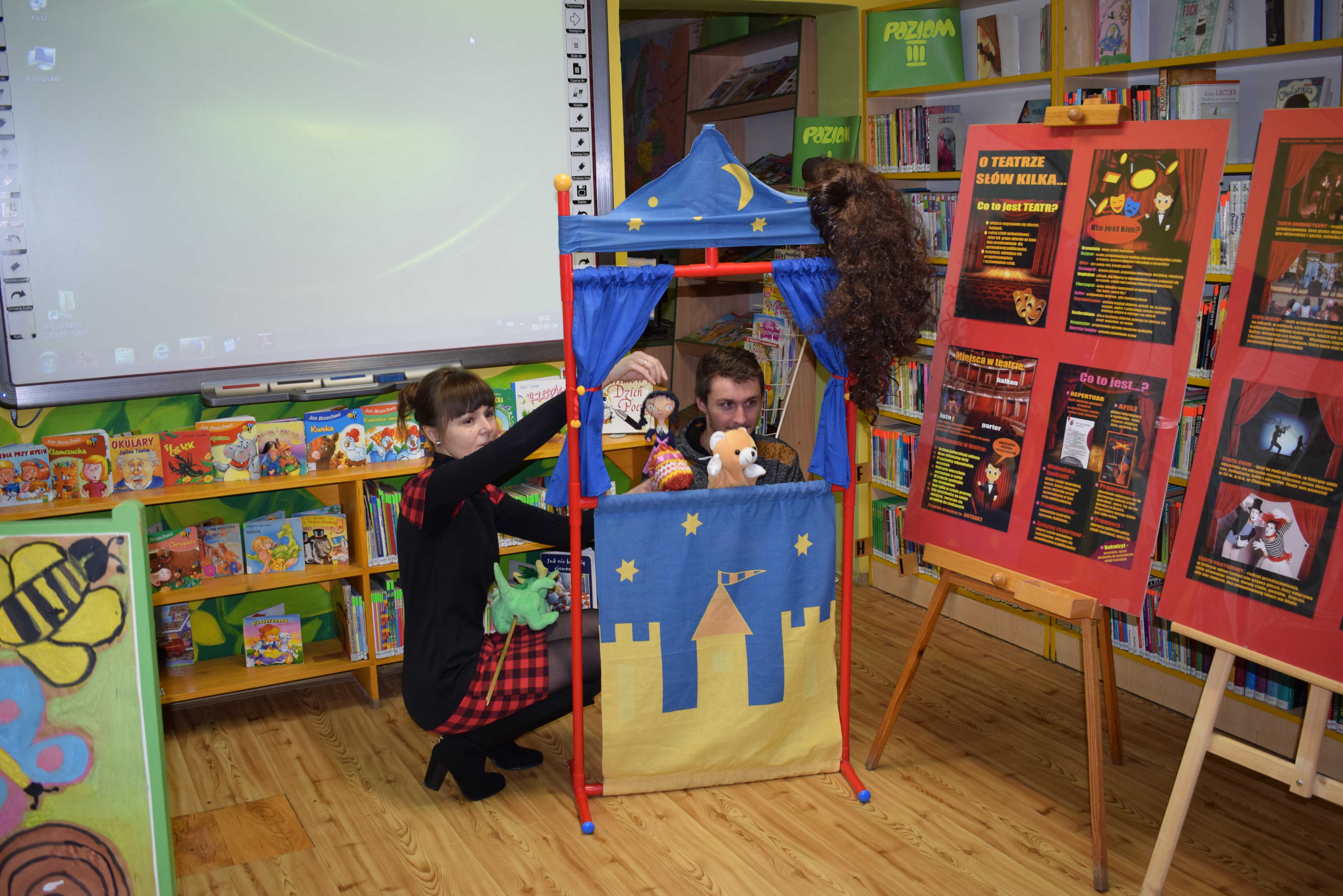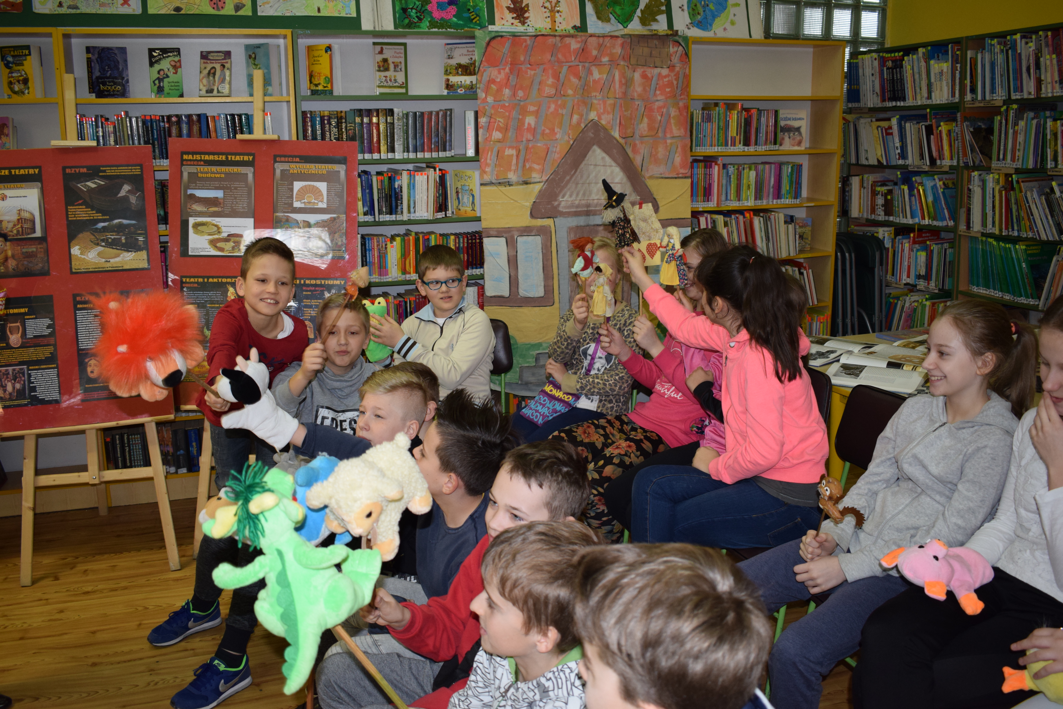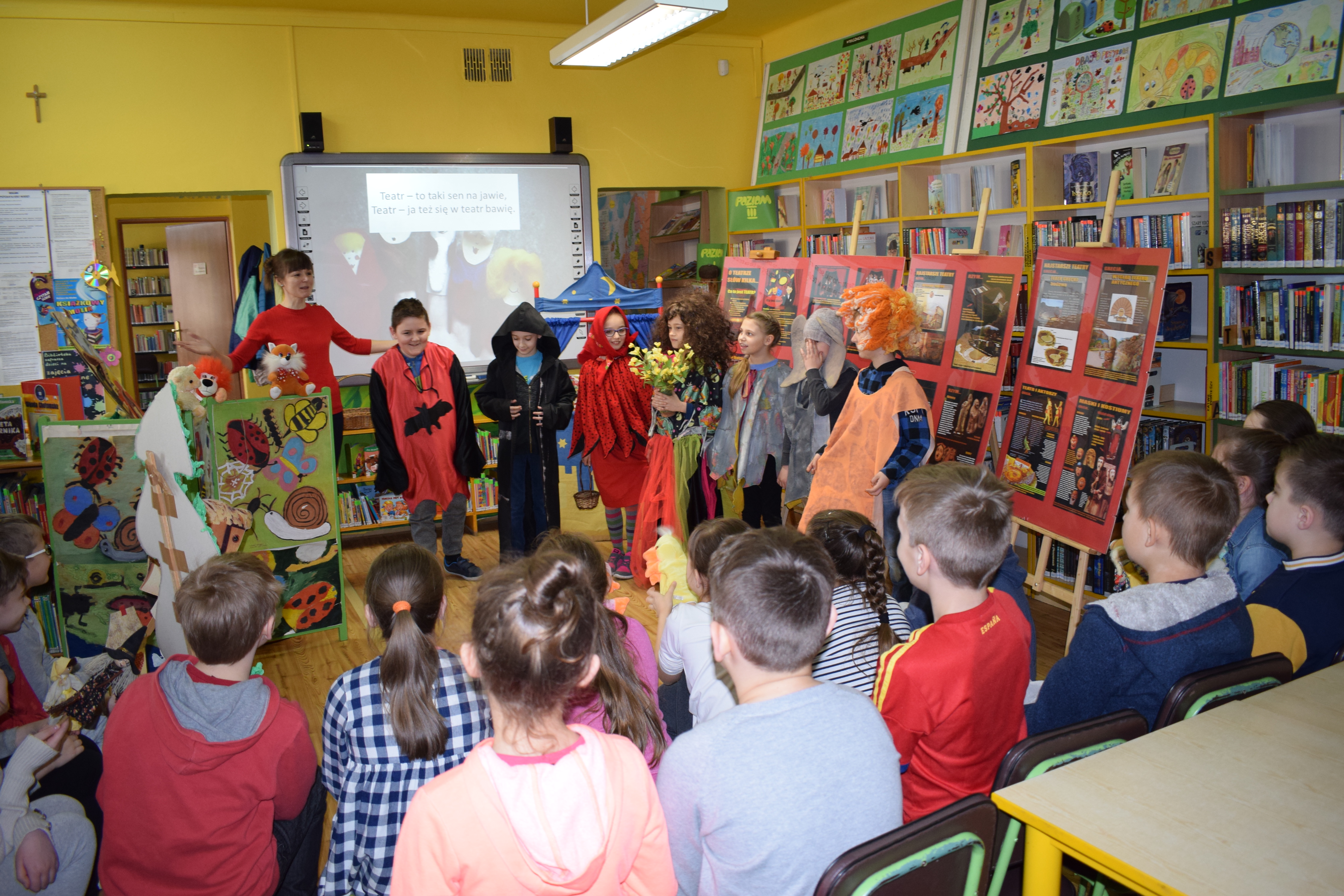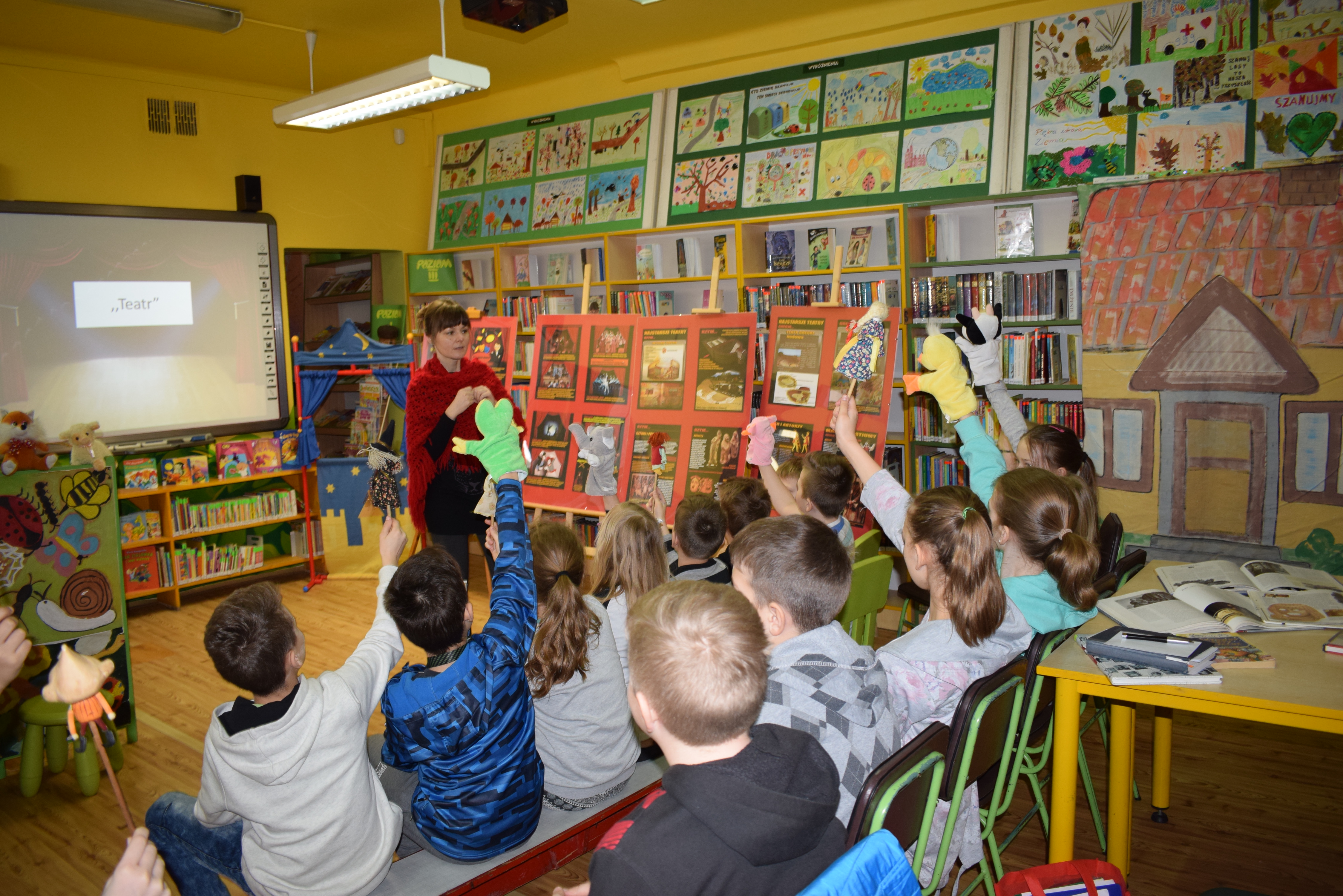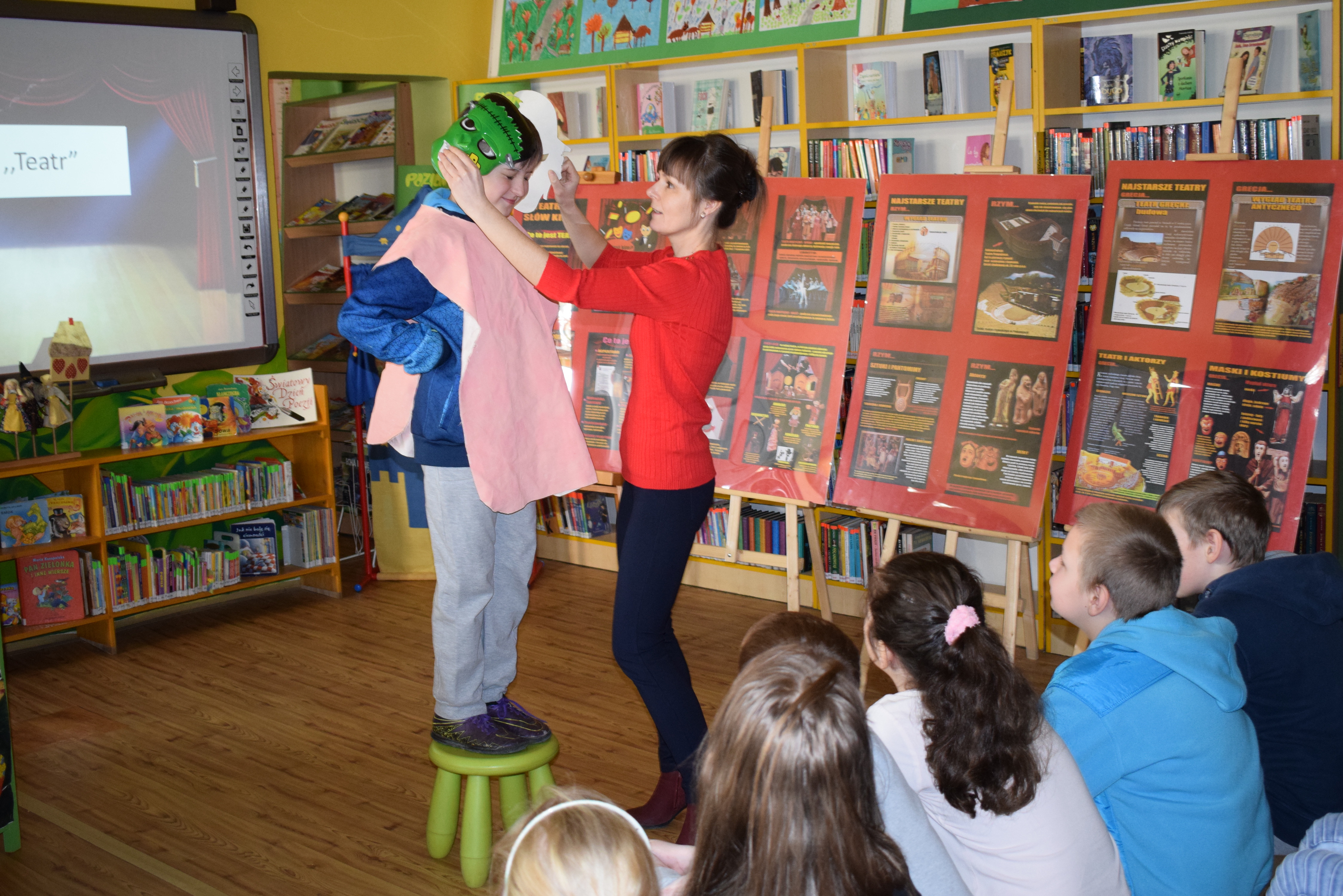 24 marca 2017 r. rozpoczęliśmy spotkanie o tematyce teatralnej. Zajęciom towarzyszy wystawa pt. "O teatrze słów kilka". jakie są teatry, jak wyglądały kiedyś, czy trudna jest praca na scenie, o tym wszystkim rozmawialiśmy z uczniami Gimnazjum z Zespołu Szkół Specjalnych w Kraśniku. Na zakończenie wspólnie odegraliśmy scenkę "Bocian i żaby", a na deser zostawiliśmy sobie oglądanie Teatru cieni.