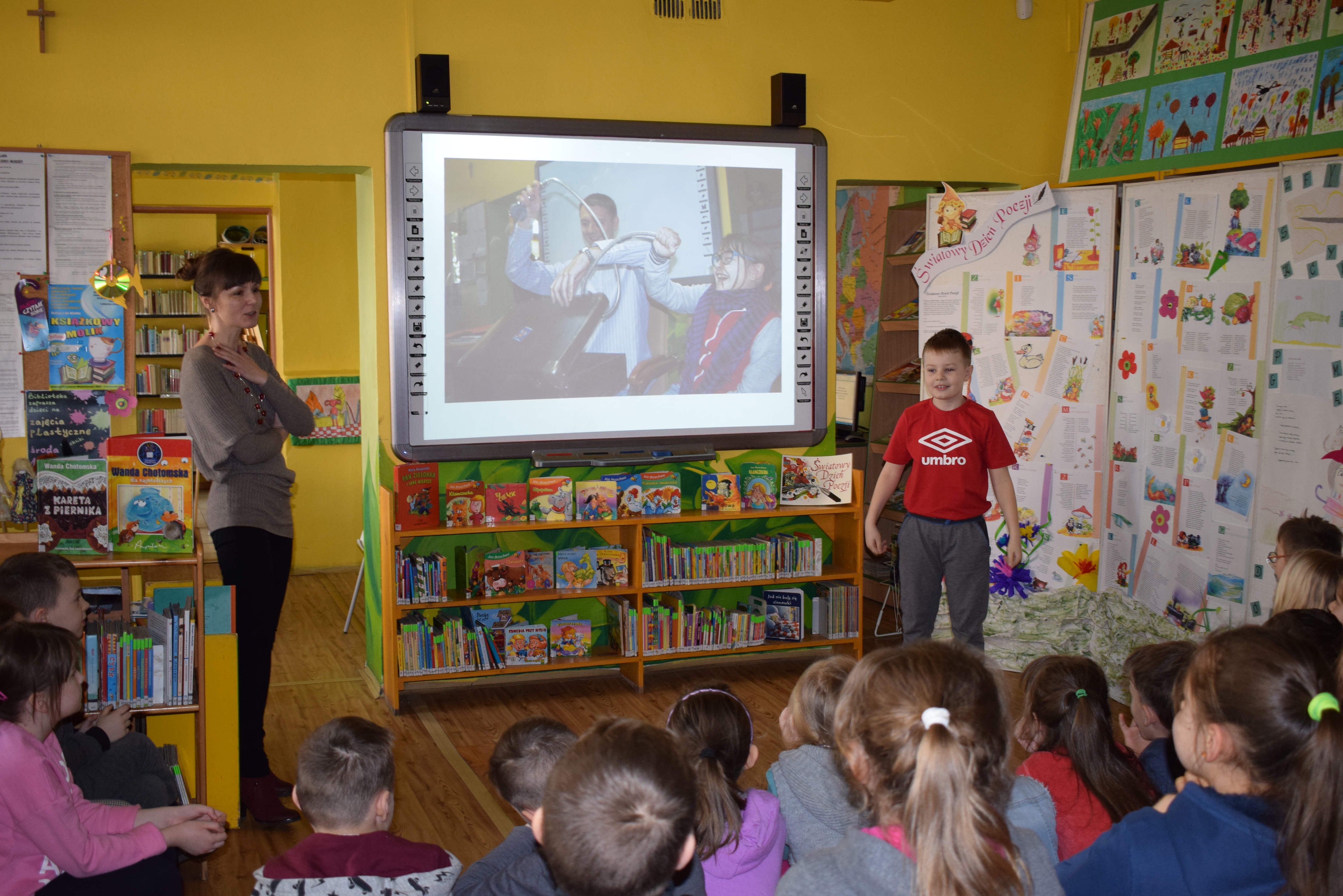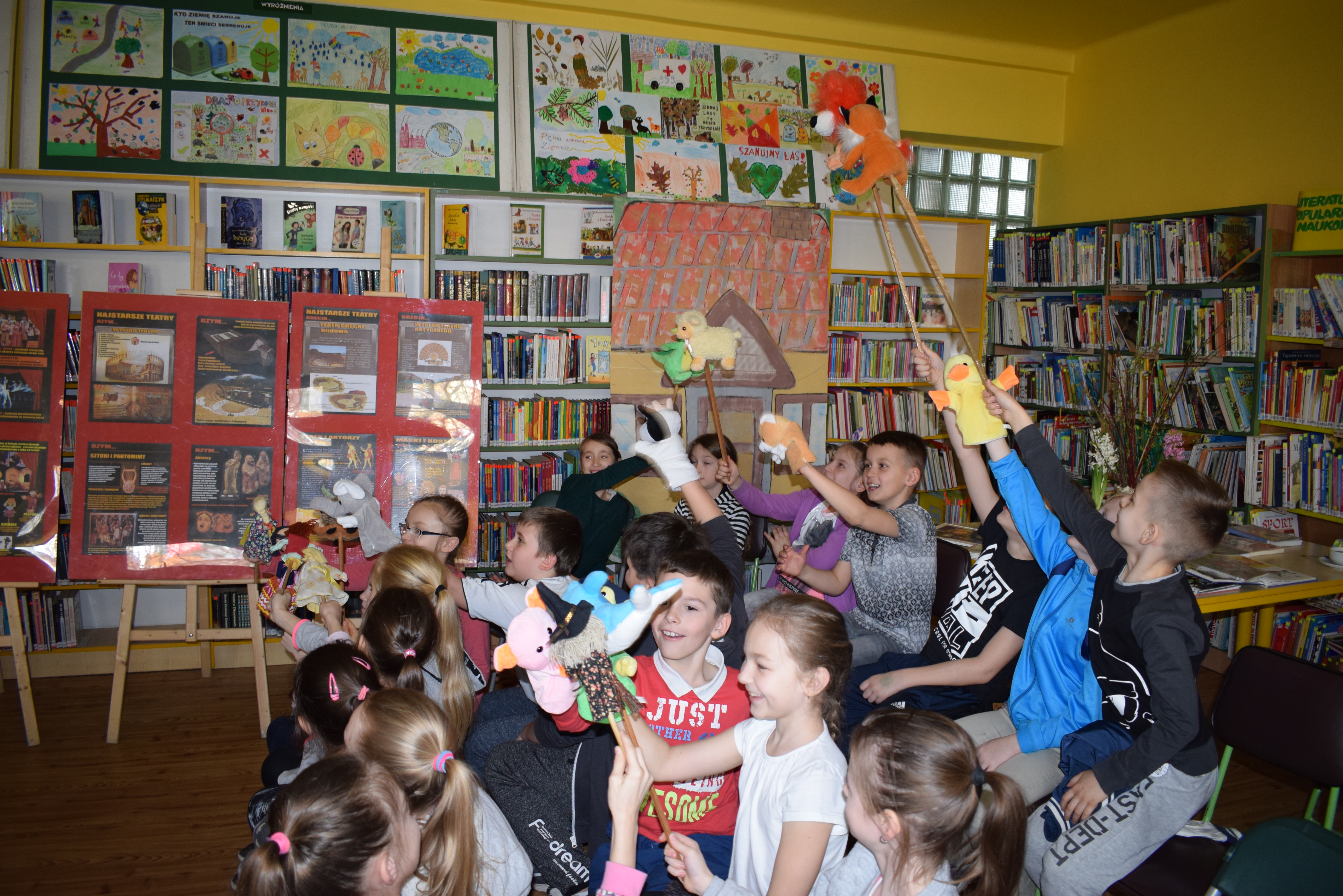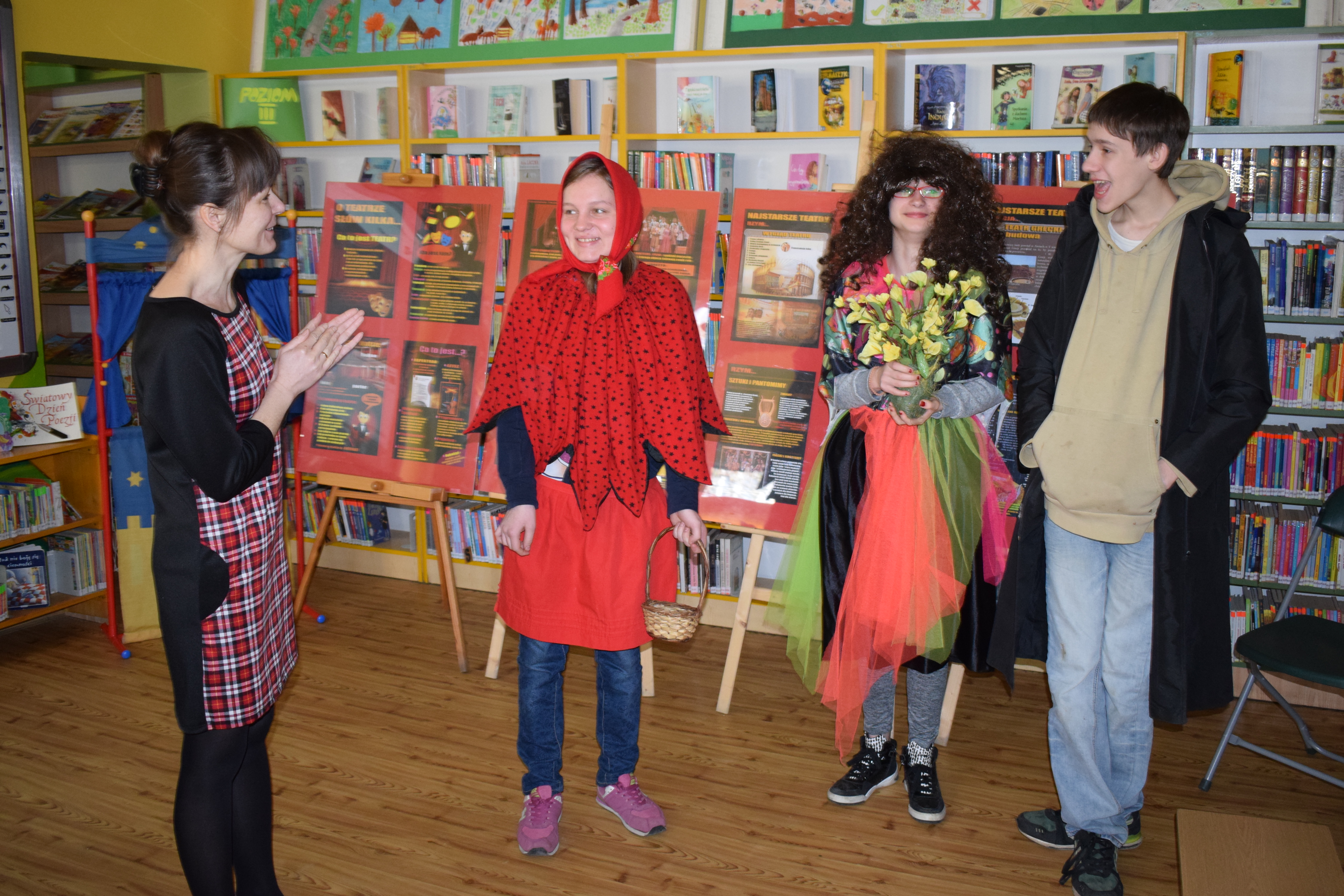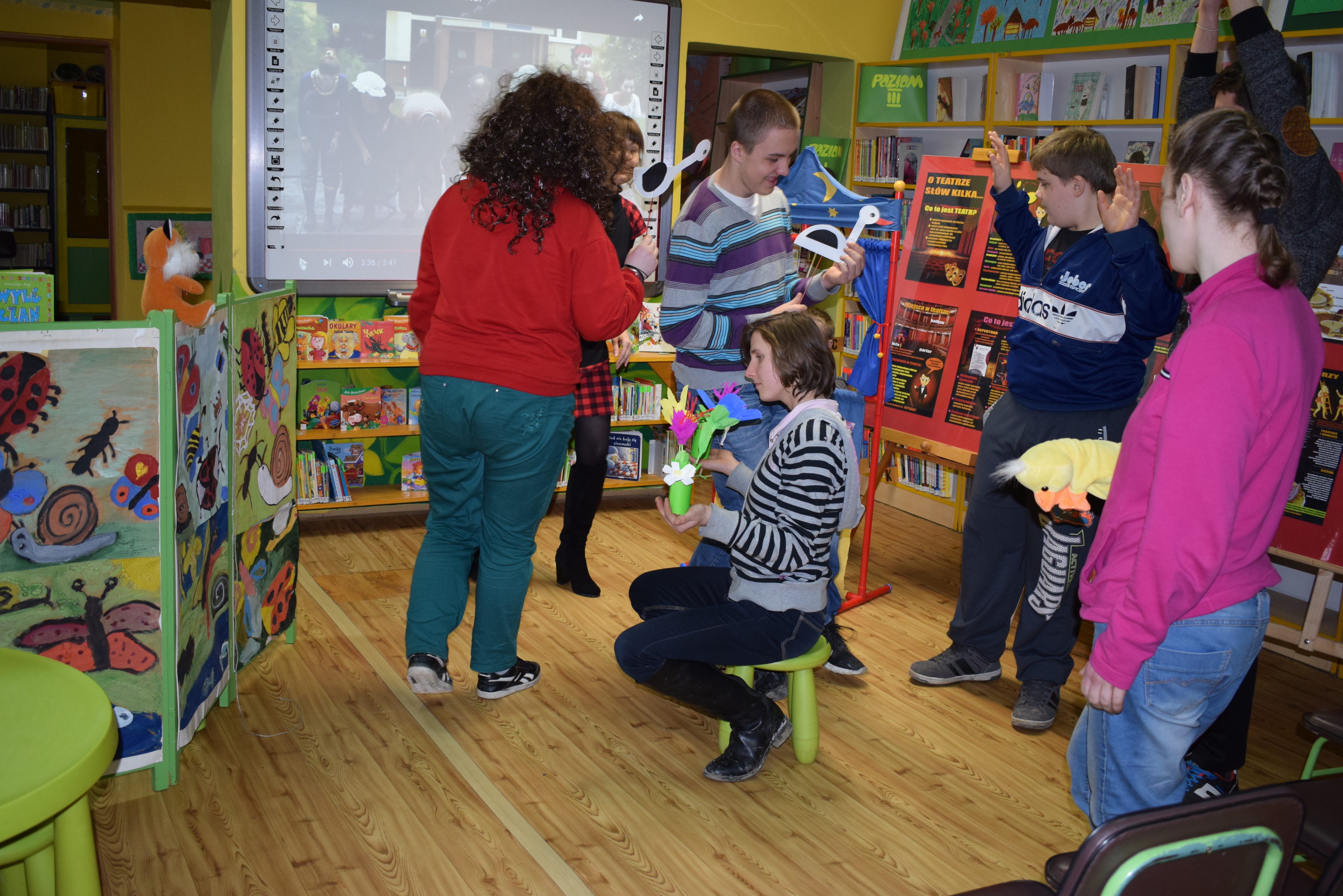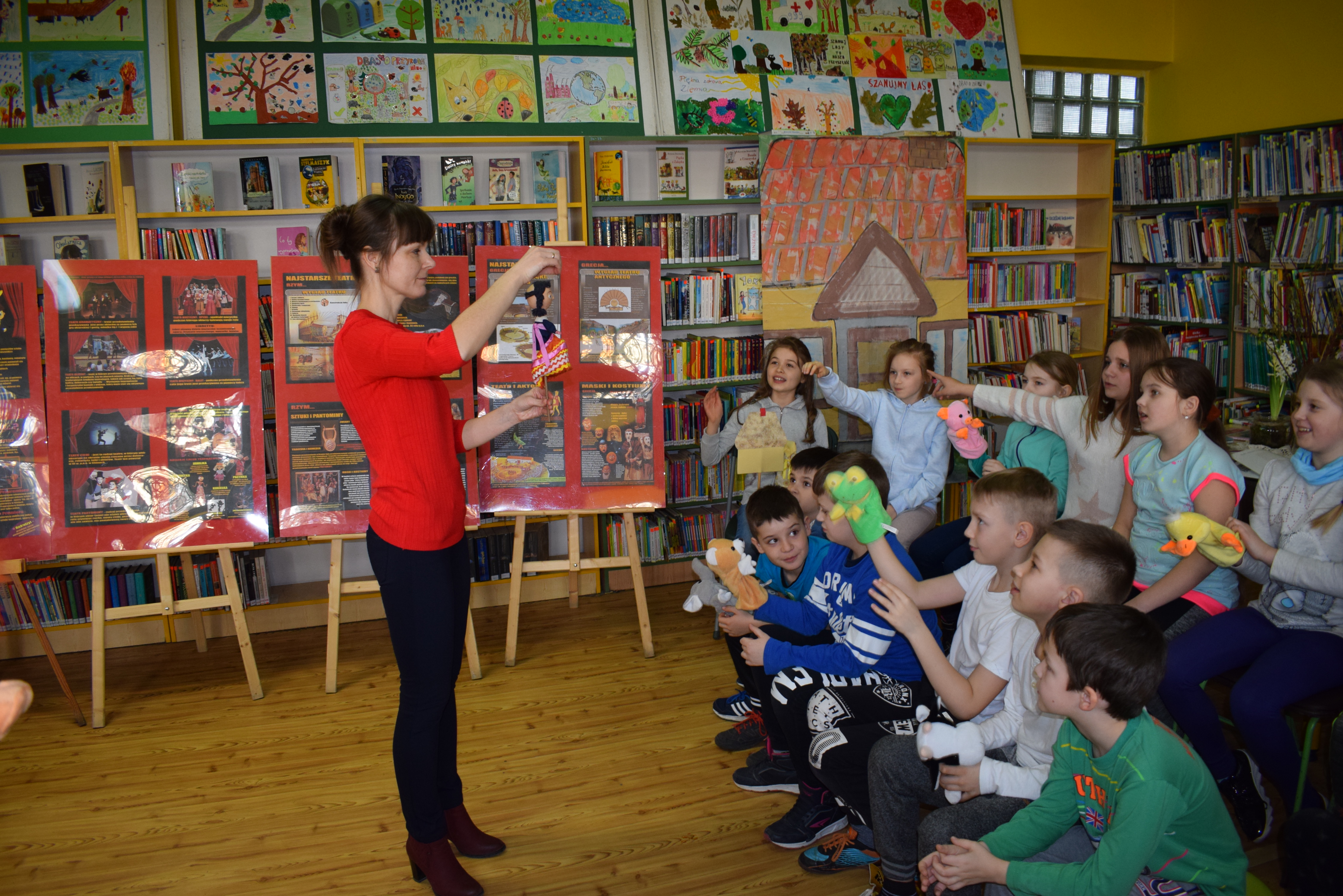 24 marca 2017 r. rozpoczęliśmy spotkanie o tematyce teatralnej. Zajęciom towarzyszy wystawa pt. "O teatrze słów kilka". jakie są teatry, jak wyglądały kiedyś, czy trudna jest praca na scenie, o tym wszystkim rozmawialiśmy z uczniami Gimnazjum z Zespołu Szkół Specjalnych w Kraśniku. Na zakończenie wspólnie odegraliśmy scenkę "Bocian i żaby", a na deser zostawiliśmy sobie oglądanie Teatru cieni.