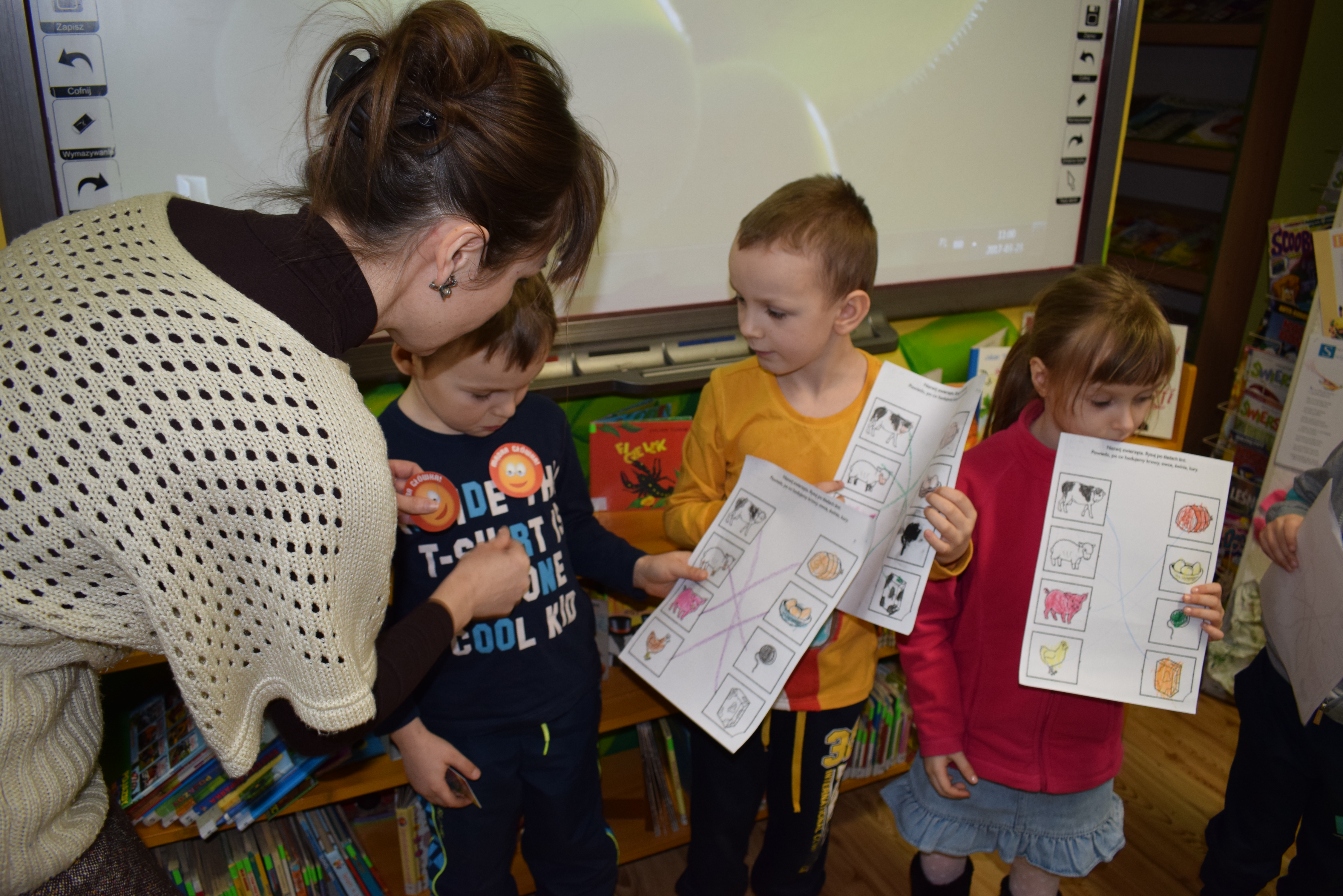 Temat znany i lubiany, ale jak się okazało zwierzęta gospodarcze nie zawsze możemy tak łatwo teraz zobaczyć. Przedszkolaki aktywnie brały udział w spotkaniu i w nagrodę wspólnie obejrzeliśmy sobie bajkę. Na do widzenia było wielkie wypożyczanie książeczek.
